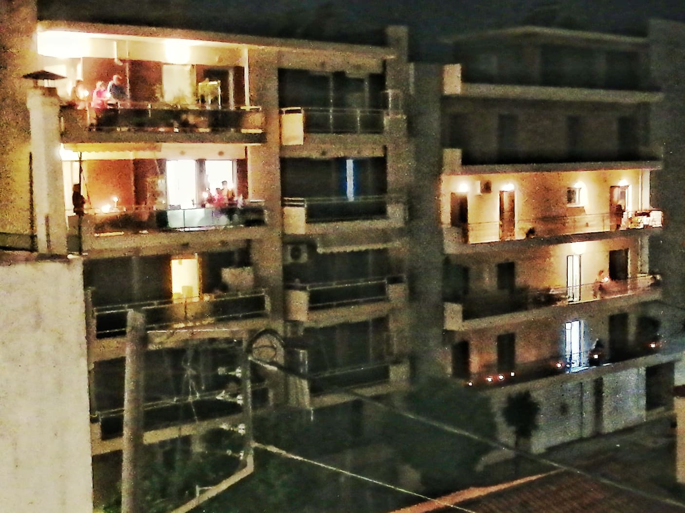Πρωτόγνωρες στιγμές λόγω κορονοϊού με πολύ κόσμο να κάνει Ανάσταση στα μπαλκόνια του κρατώντας λαμπάδες και ανταλλάσσοντας ευχές για Καλό Πάσχα με τους γείτονες.