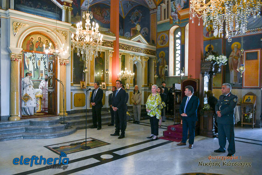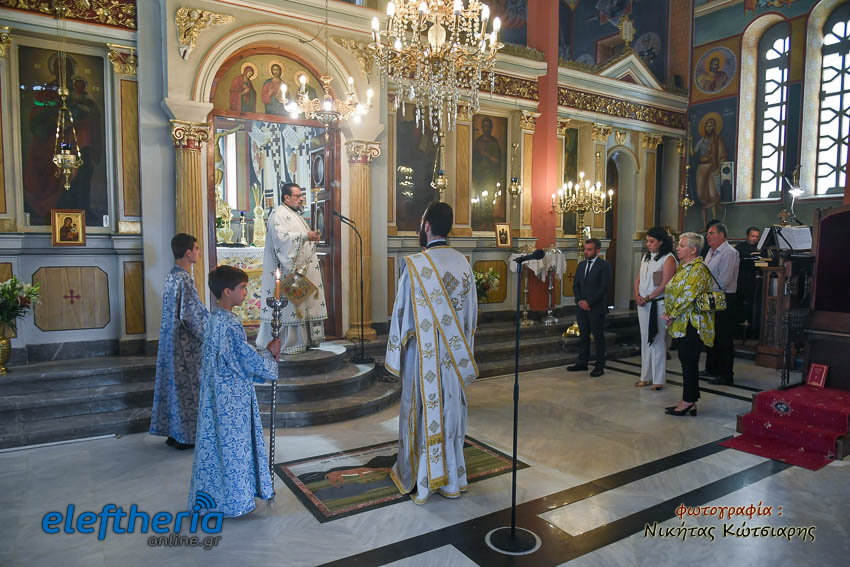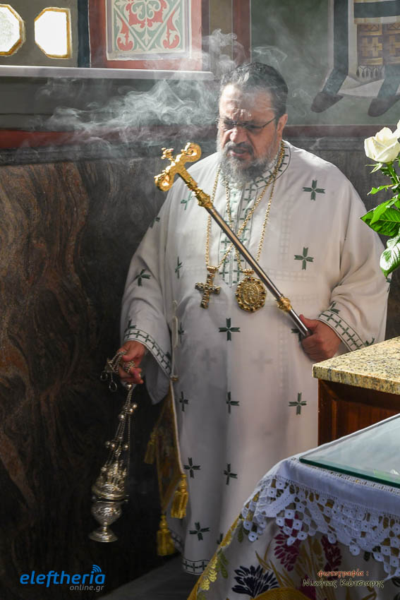 Στις ιερές Ακολουθίες συμμετείχε πλήθος πιστών, αλλά και εκπρόσωποι τοπικών αρχών και φορέων, τηρουμένων των μέτρων πρόληψης κατά της πανδημίας.