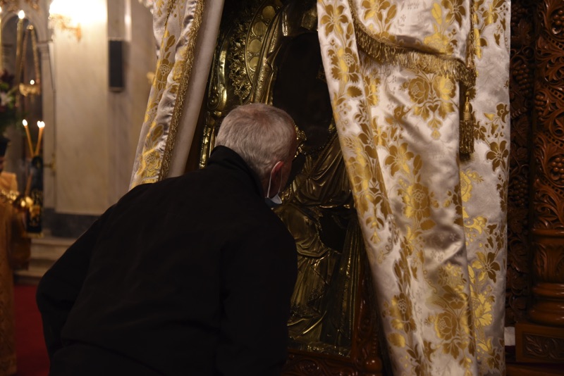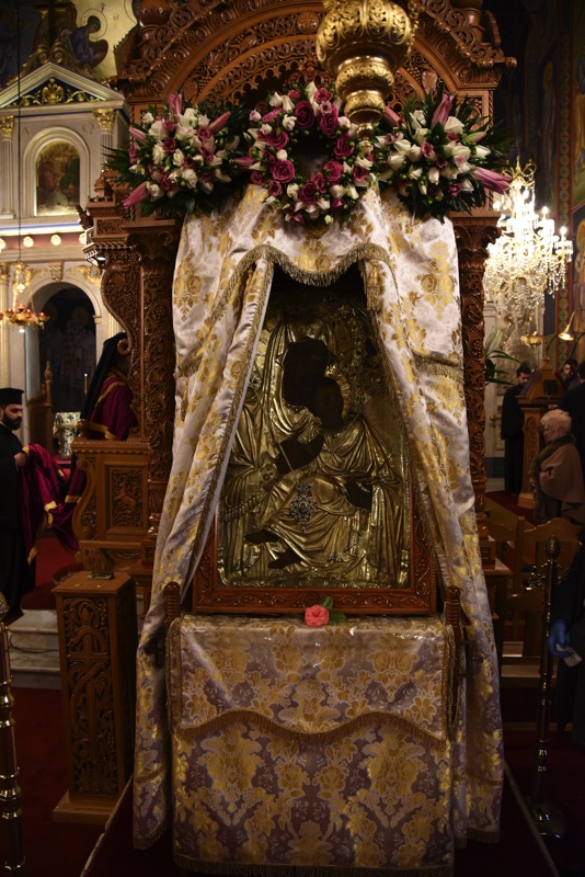Πιστοί προσήλθαν στον Ιερό Ναό, προκειμένου να προσκυνήσουν την Ιερά και Θαυματουργό Εικόνα της Παναγίας, αποτίωντας φόρο τιμής και ευλάβειας στην Χάρη της.