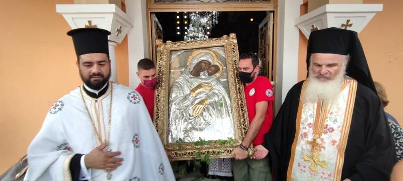 Η εικόνα επέστρεψε στο θρόνο της οδικώς και όχι με πεζοπορία πιστών, λόγω των μέτρων προστασίας έναντι της πανδημίας.
