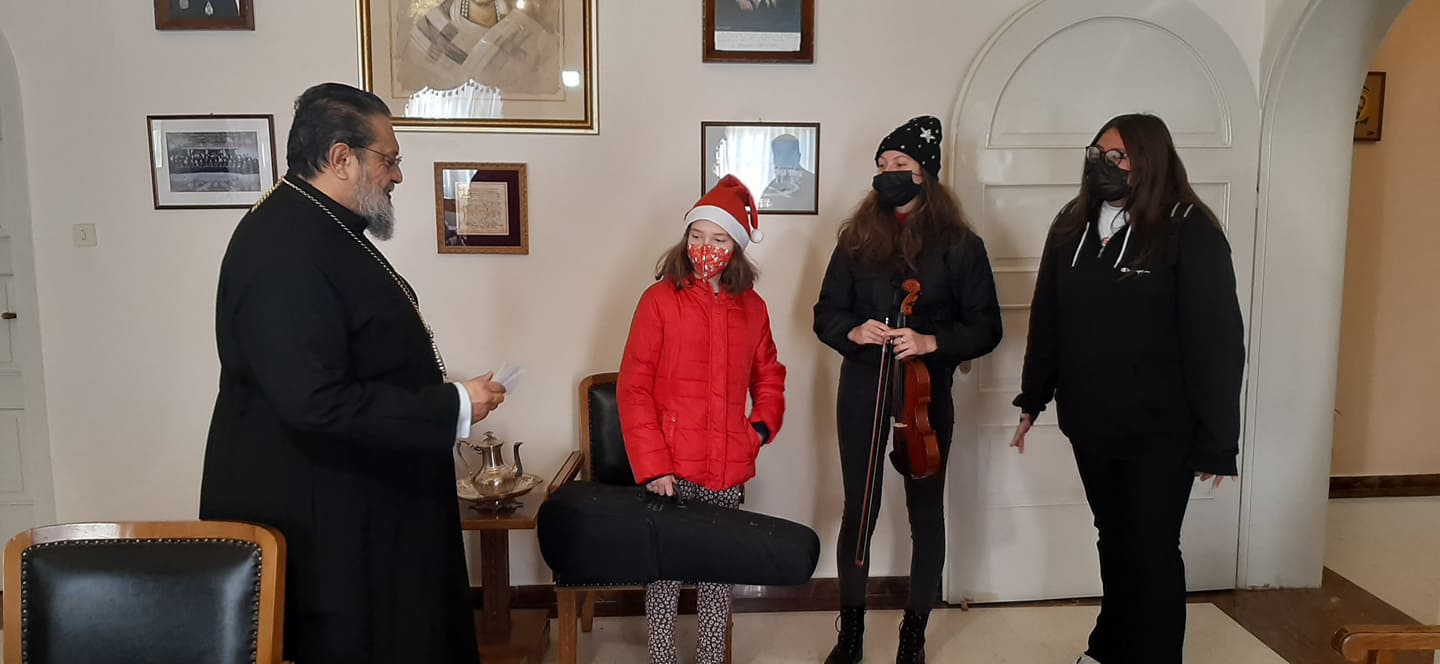 Χριστουγεννιάτικα κάλαντα και παραδοσιακά τραγούδια έψαλαν σήμερα στον Μητροπολίτη Μεσσηνίας Χρυσόστομο, ομάδες παιδιών καθώς και η χορωδία της Σχολής Βυζαντινής Μουσικής της Μητρόπολης.