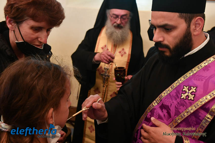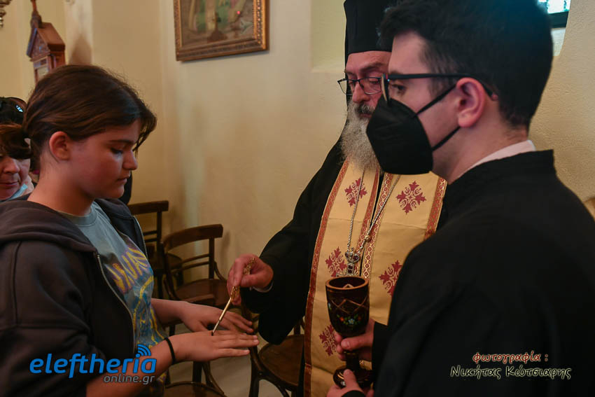 Ο μητροπολίτης έχρισε τους πιστούς δια του Αγίου ελαίου και ευχήθηκε σε όλους υγεία, δύναμη και καλή Ανάσταση.