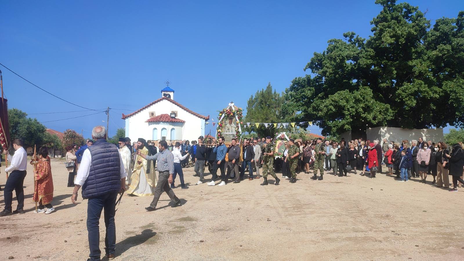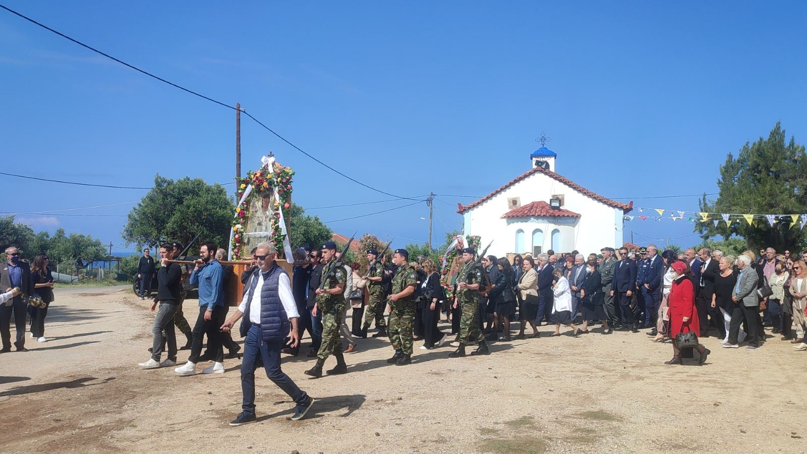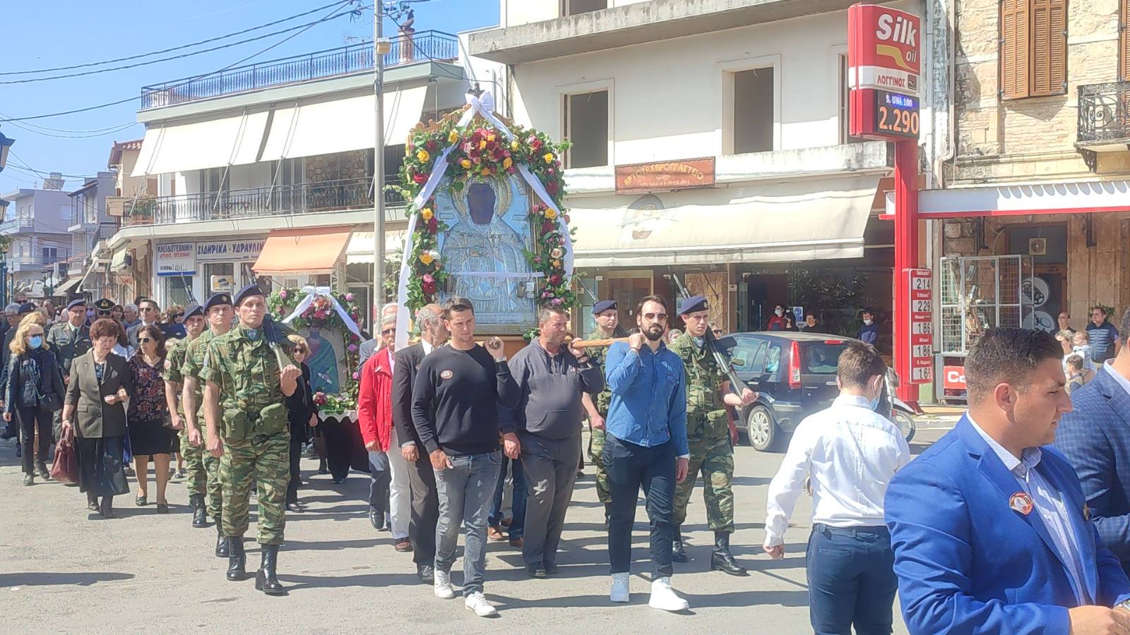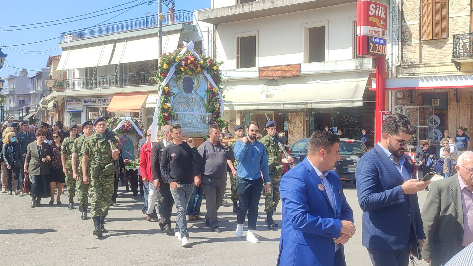 Μετά την Θεία Λειτουργία ακολούθησε λιτάνευση της εικόνας στην πόλη των Φιλιατρών παρουσία των βουλευτών Μίλτου Χρυσομάλλη και Περικλή Μαντά, του δημάρχου Τριφυλίας Γιώργου Λεβεντάκη και της αντιπεριφερειάρχη Τουρισμού Αννας Καλογεροπούλου.