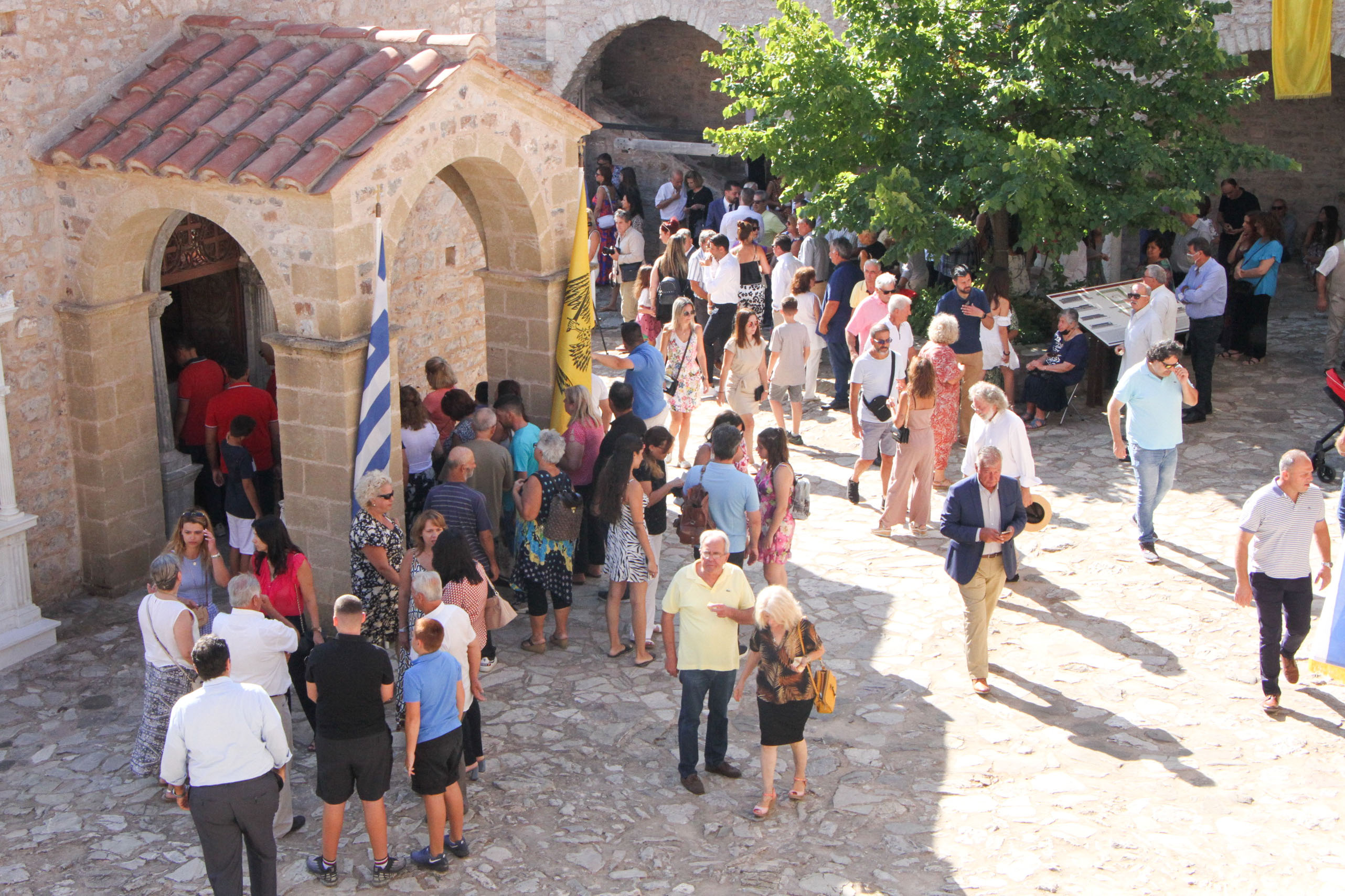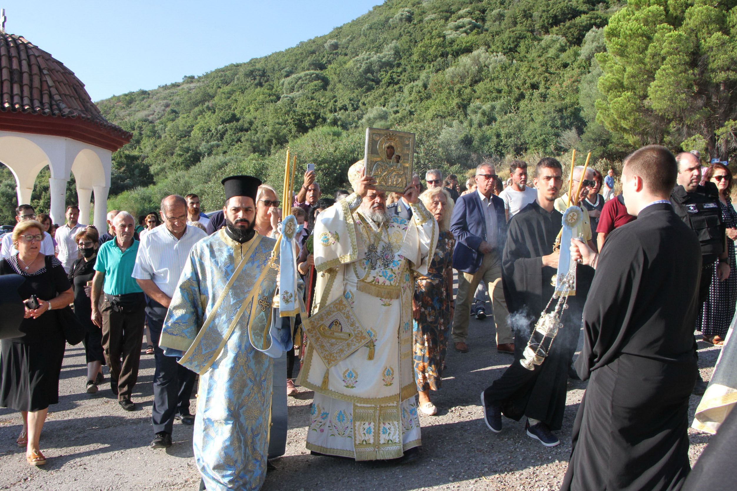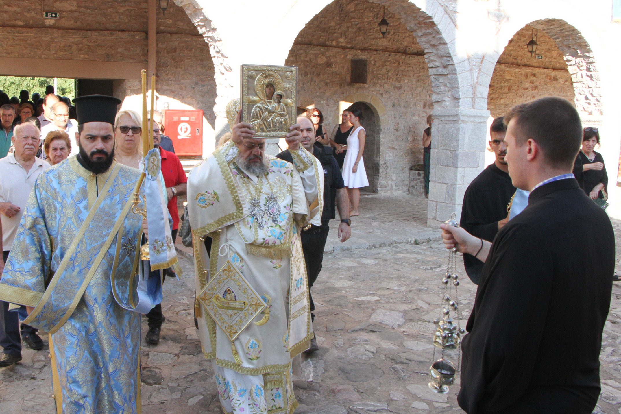 Κατά τον όρθρο, την υποδοχή της Ιεράς και Θαυματουργού Εικόνος της Παναγίας Βουλκανιωτίσσης εκ του πρώτου Μοναστηρίου της επί της κορυφής του Όρους Ιθώμη καθώς και στην πανηγυρική Θεία Λειτουργία προεξήρχε ο Μητροπολίτης Μεσσηνίας Χρυσόστομος, πλαισιούμενος από τον καθηγούμενο Αρχιμανδρίτη Προκόπιο Σμυρνή, τον Αρχιμανδρίτη Αλέξιο Σαραντόπουλο και το Διάκονο Θεόφιλο Κυριάκο.