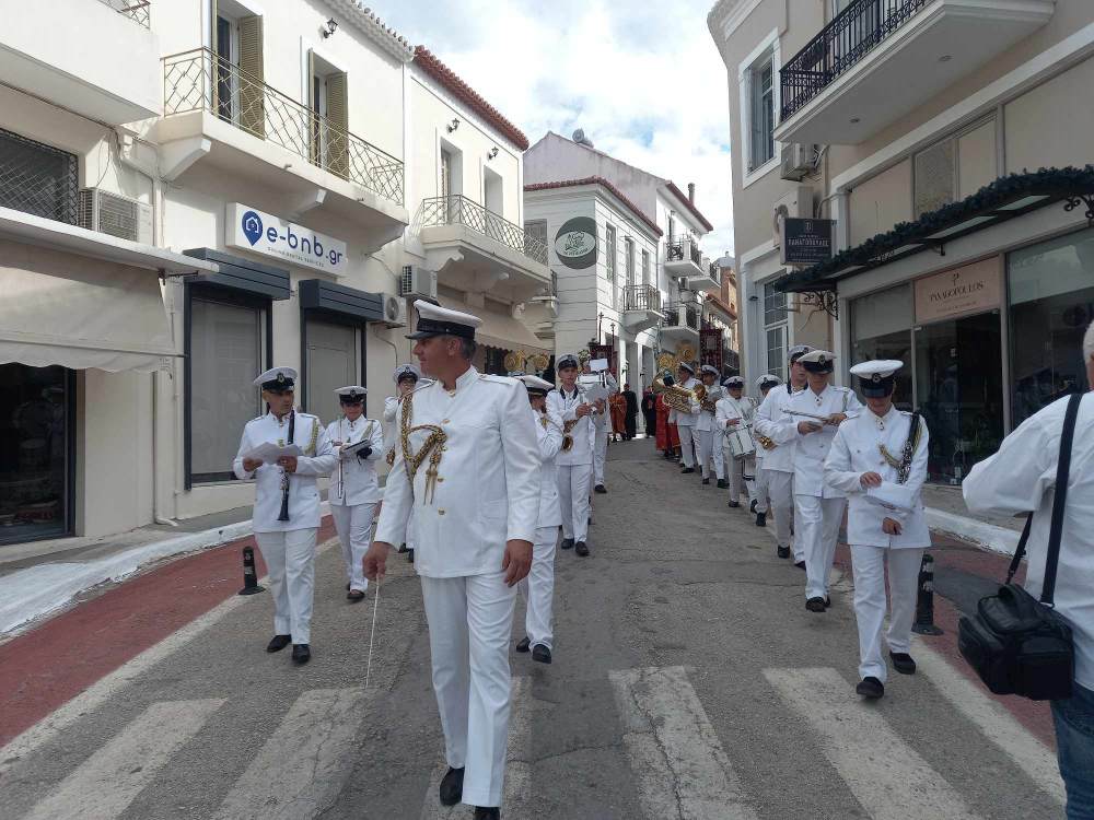 Η πομπή πέρασε από την πλατεία Τριών Ναυάρχων και επέστρεψε στον Ιερό Ναό Κοιμήσεως της Θεοτόκου, συνοδεία της μπάντας του Λιμενικού Σώματος και της Φιλαρμονικής Πύλου.