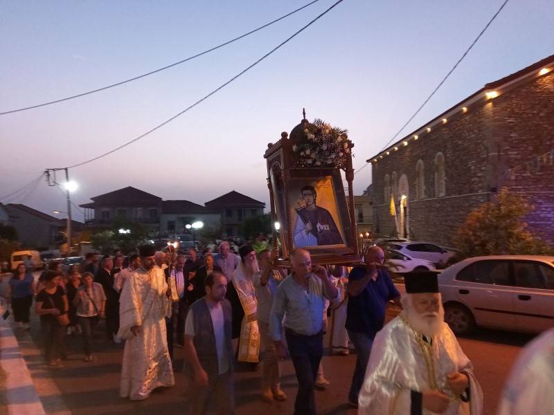 Μετά το πέρας του εσπερινού ξεκίνησε η Λιτανεία της Ιεράς Εικόνας και των Αγίων Λειψάνων του Νεομάρτυρα Αγίου Δημητρίου του Χωραΐτη από τον Ιερό Ναό Αγίου Γεωργίου δια των οδών της Χώρας με κατάληξη το Ναΐδριο Αγίων Κωνσταντίνου & Ελένης.