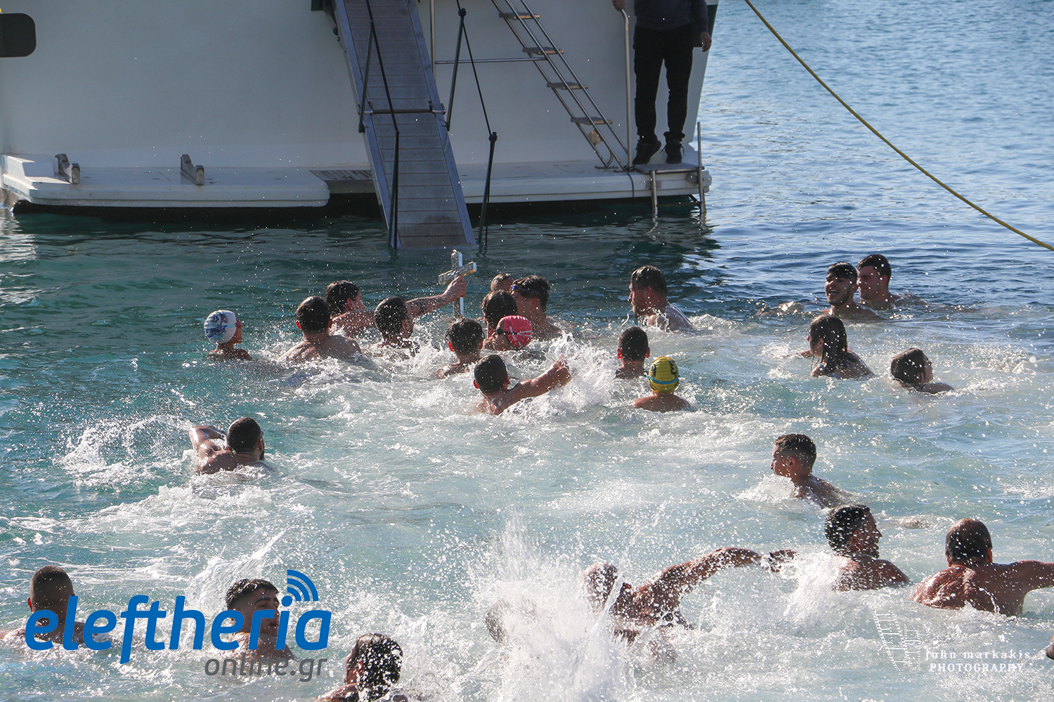 Για τον σταυρό έπεσαν 40 περίπου κολυμβητές κάθε ηλικίας και τον έπιασε για 4η φορά ο 19χρονος Ντίνος Αδαμόπουλος, κολυμβητής του ΝΟΚ.