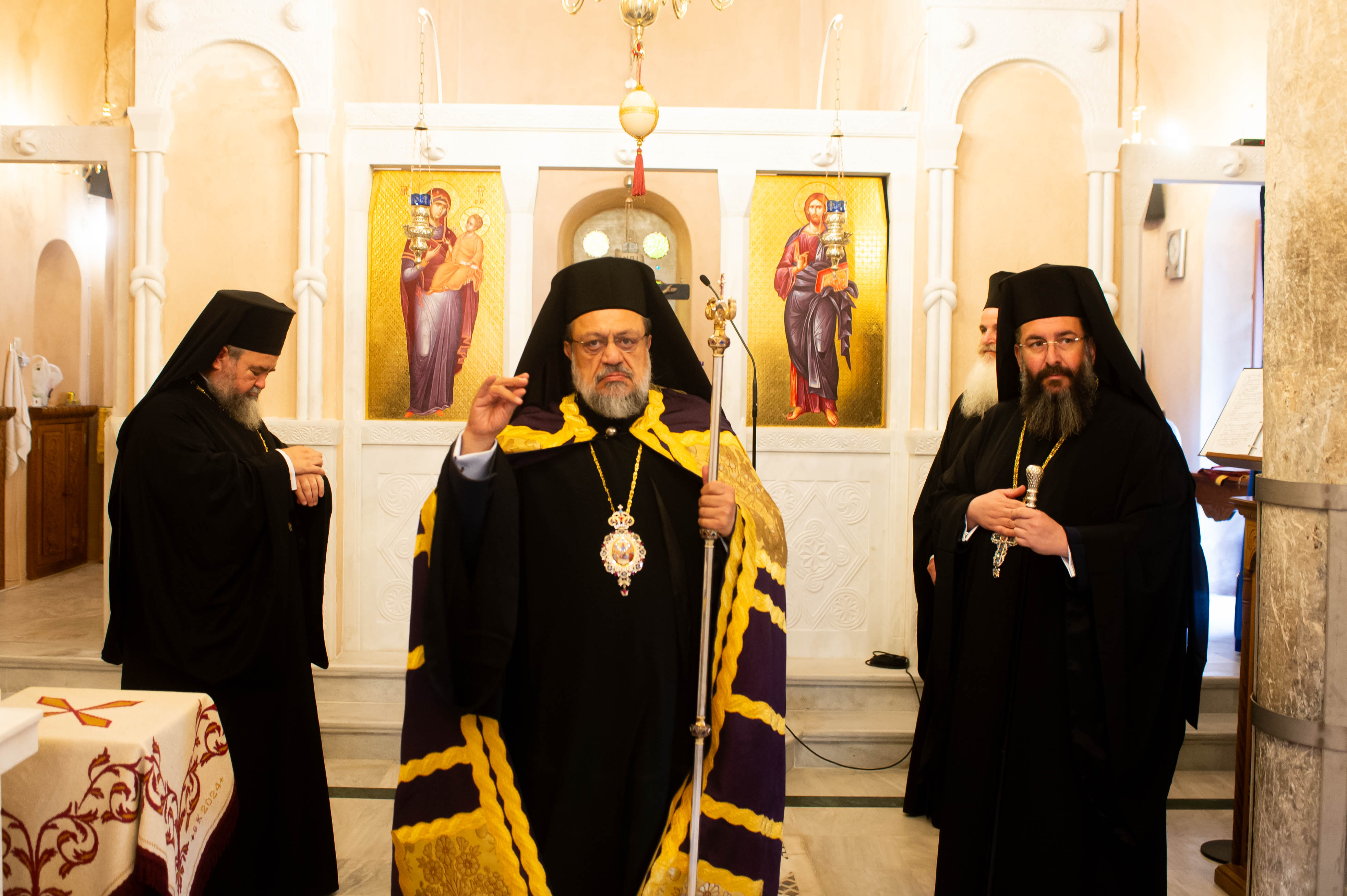 Τον Σεβασμιώτατο πλαισίωσαν ο Πρωτοσύγκελλος της Ιεράς Μητροπόλεως Μεσσηνίας Αρχιμανδρίτης Φίλιππος Χαμαργιάς, ο Καθηγούμενος της Ιεράς Μονής Βουλκάνου Προκόπιος και οι εκ των αδελφών της Ιεράς Μονής, Αρχιμανδρίτες Ευθύμιος Θεοδωρόπουλος και Αλέξιος Σαραντόπουλος και ο Διάκονος Θεόφιλος Κυριάκος.