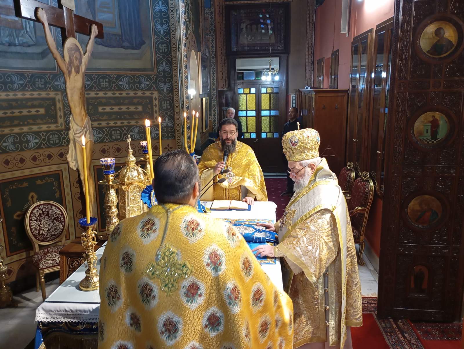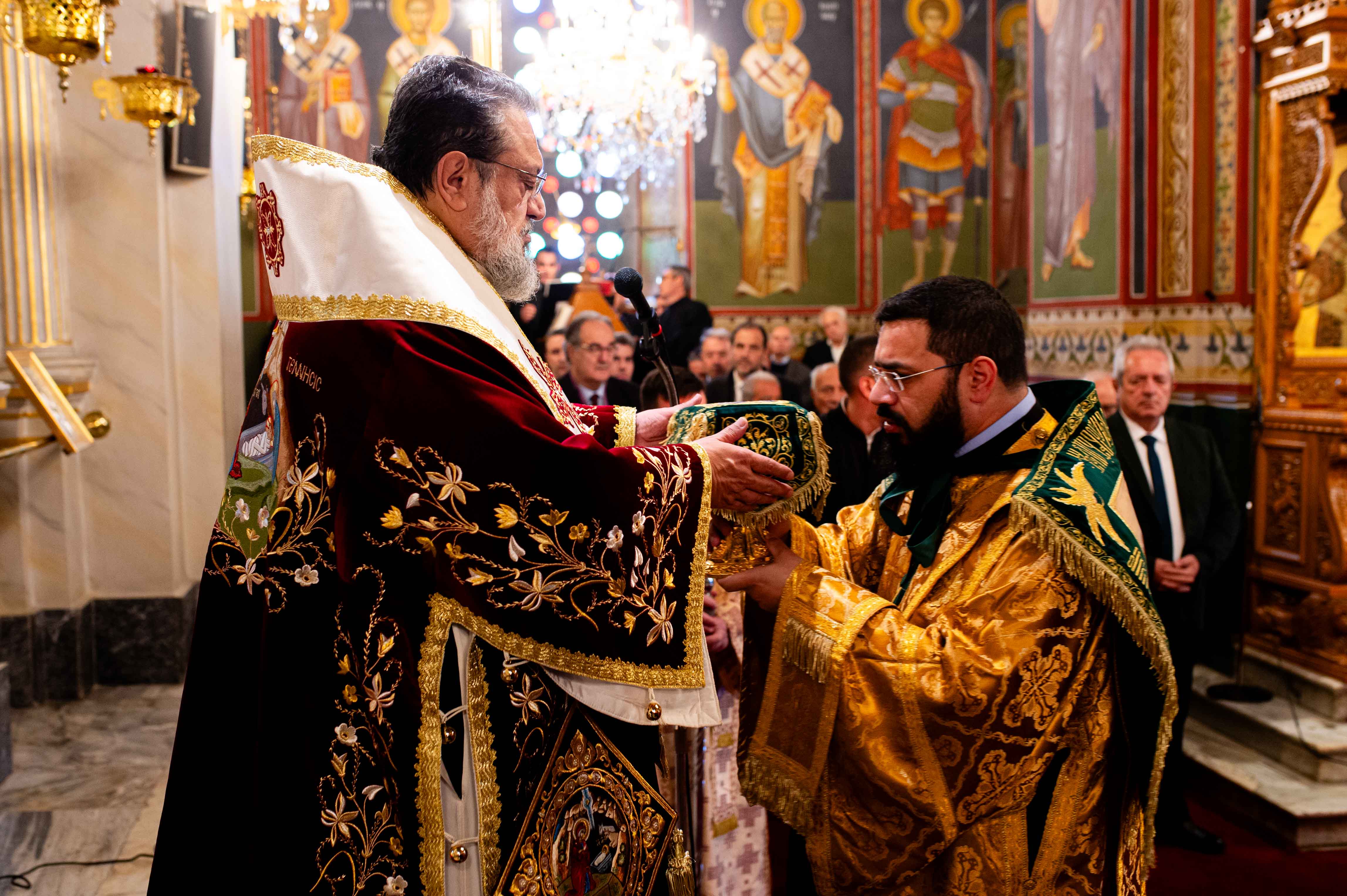 Πριν το τέλος της Θείας Λειτουργίας ο Σεβασμιώτατος Λεοντόπολεως ευχήθηκε σε όλους να βρούμε την εσωτερική μας ειρήνη και γαλήνη, ώστε να μπορέσουμε να βιώσουμε το “επί γης ειρήνη”.