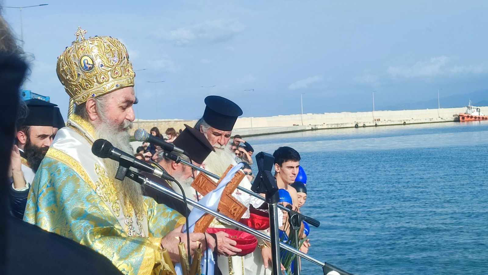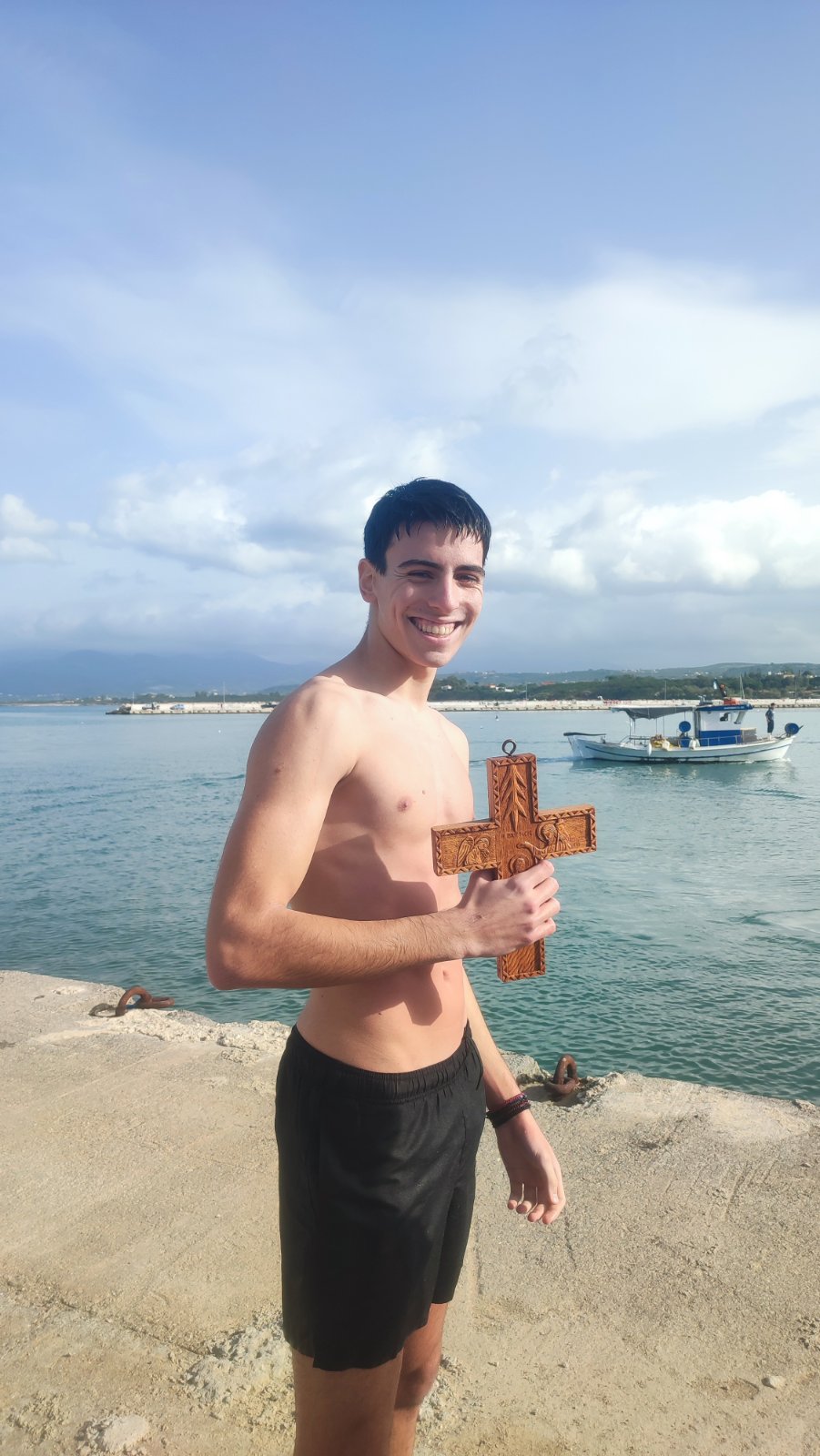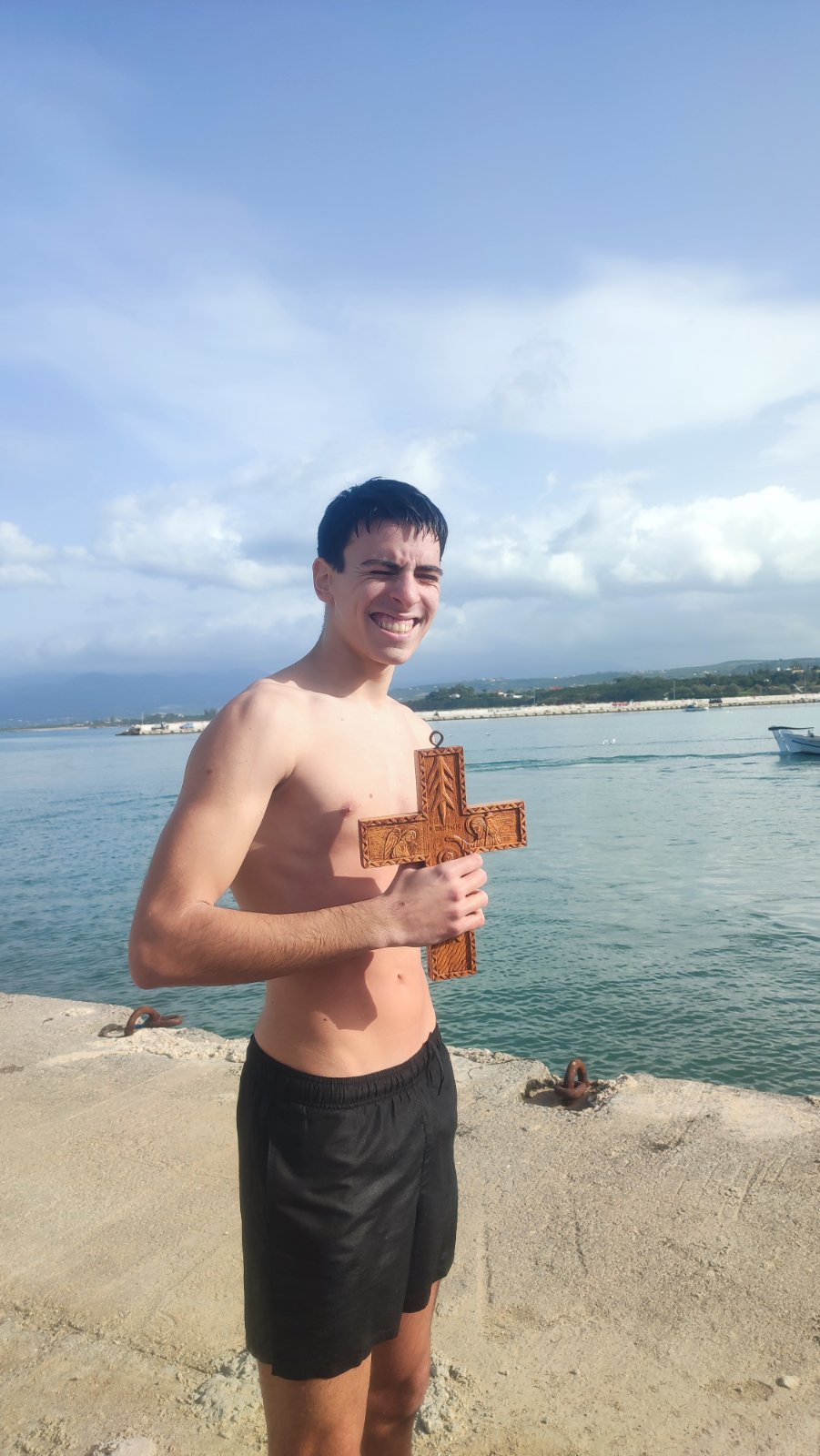 Μετά την κατάδυση του Τιμίου Σταυρού στα νερά του λιμανιού της πόλης βούτηξαν 9 νεαρά άτομα και τελικά τον Σταυρό έπιασε ο μαθητής Κωνσταντίνος Τσάλτας.