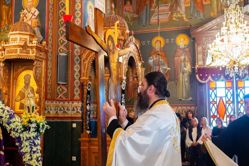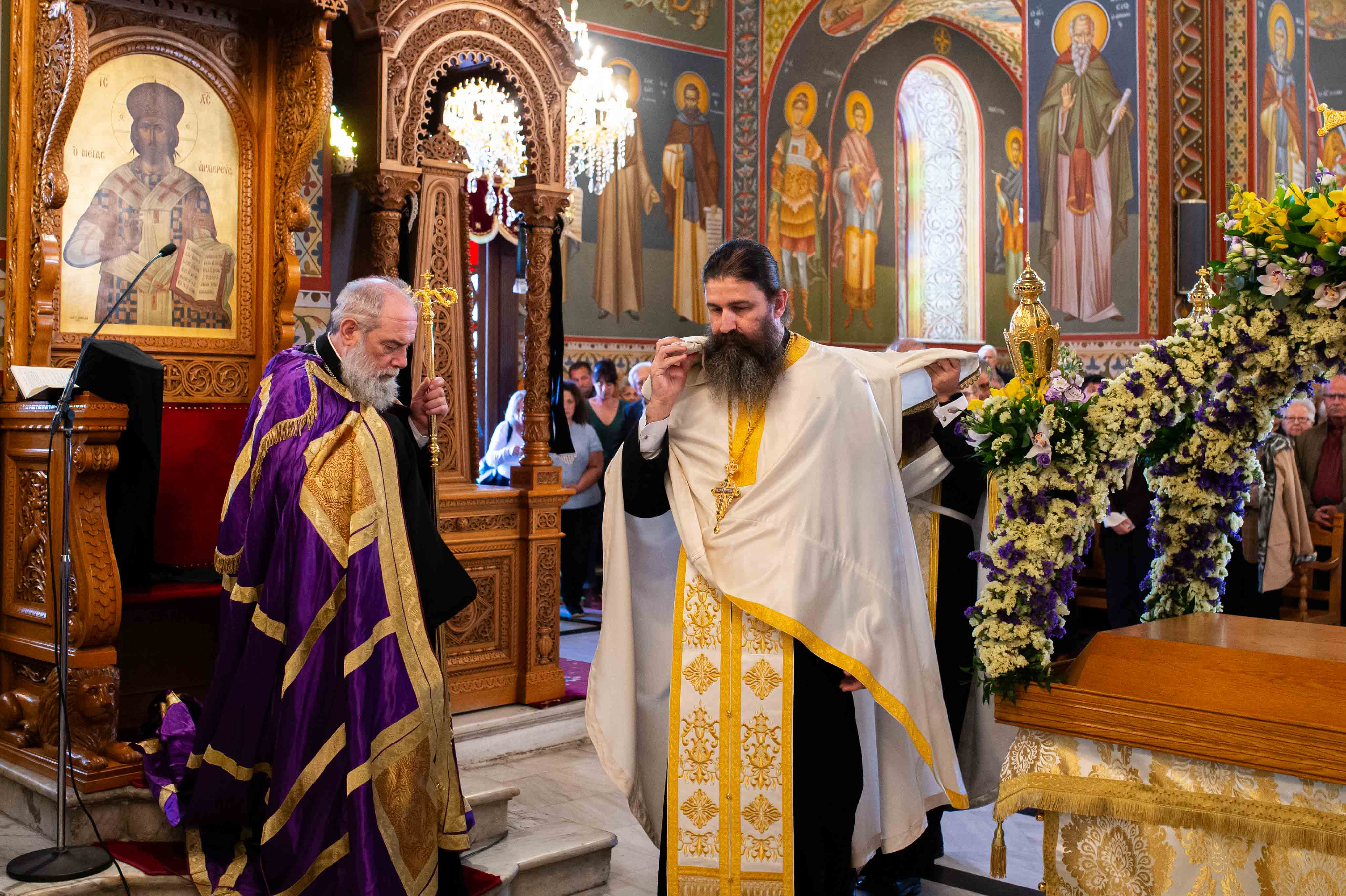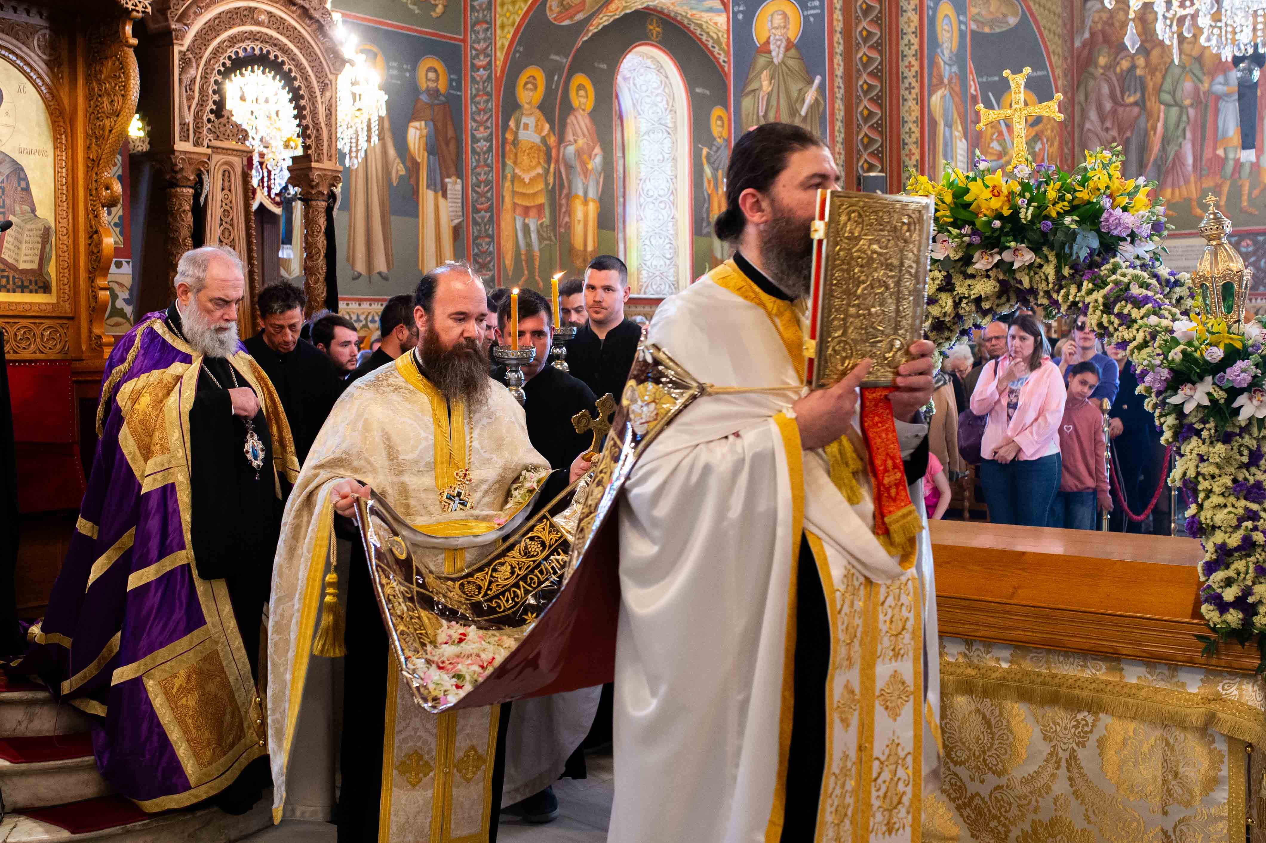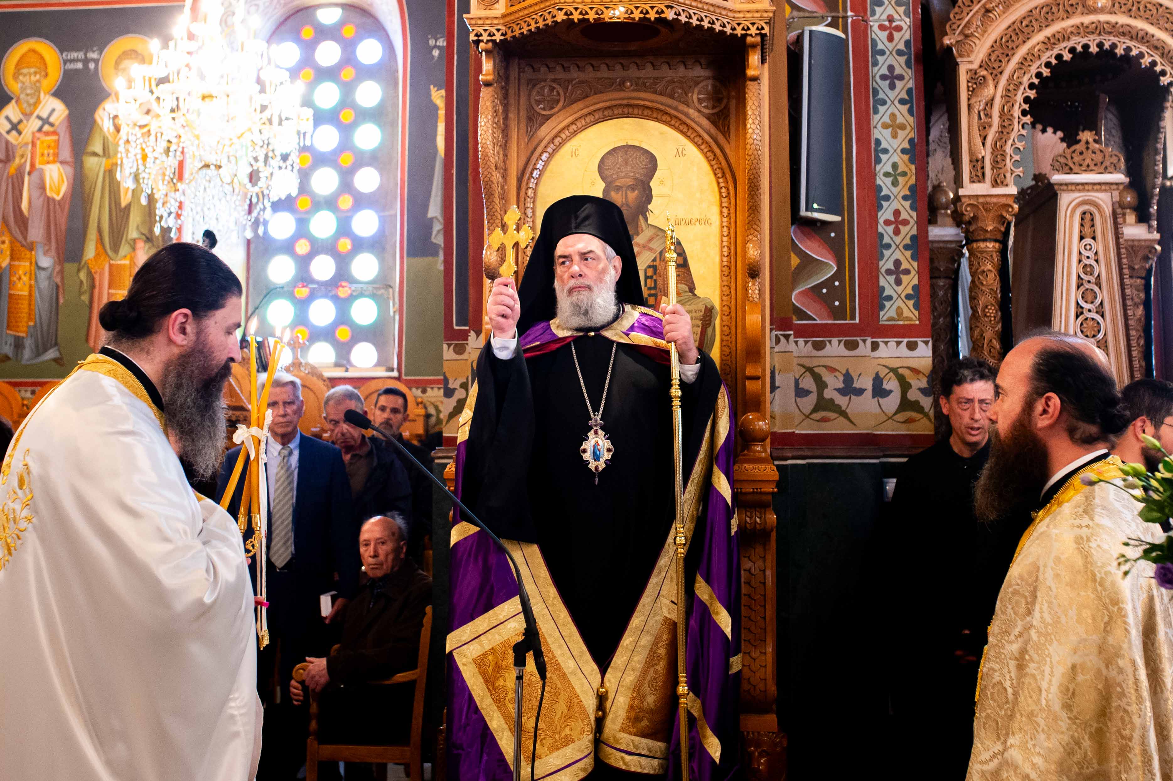 Η Ακολουθία τελέσθηκε χοροστατούντος του Μητροπολίτη Γέροντος Λεοντοπόλεως Γαβριήλ, πλαισιωμένου υπό των εφημερίων του Μητροπολιτικού Ναού και του Διακόνου Θεοφίλου Κυριάκου, ενώ την υμνολογία της ημέρας απέδωσαν μελωδικώτατα οι χοροί των ιεροψαλτών.