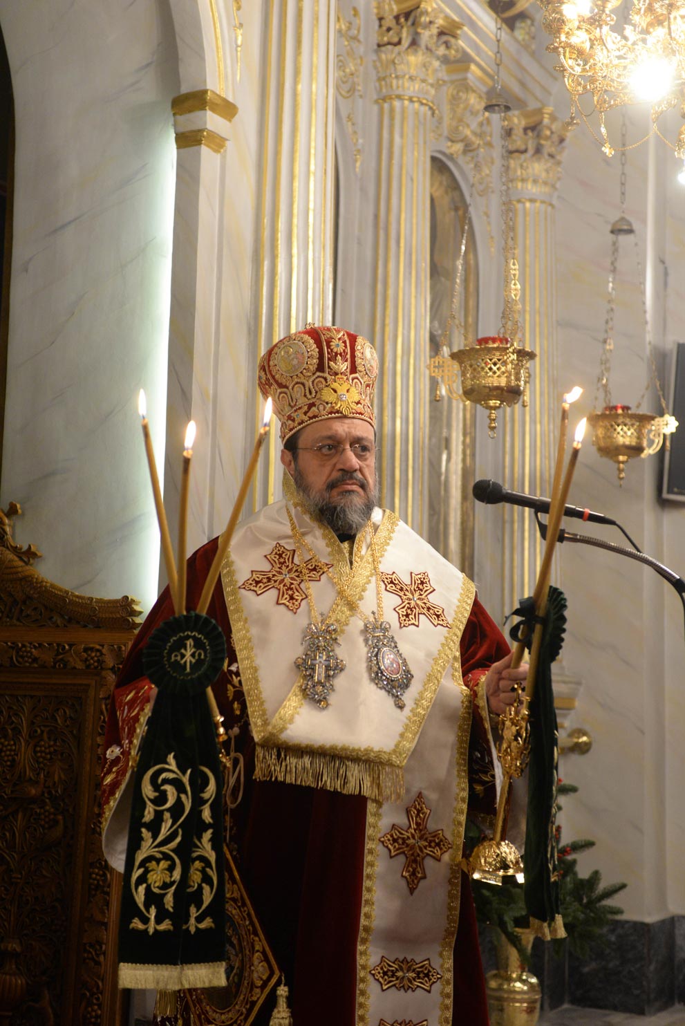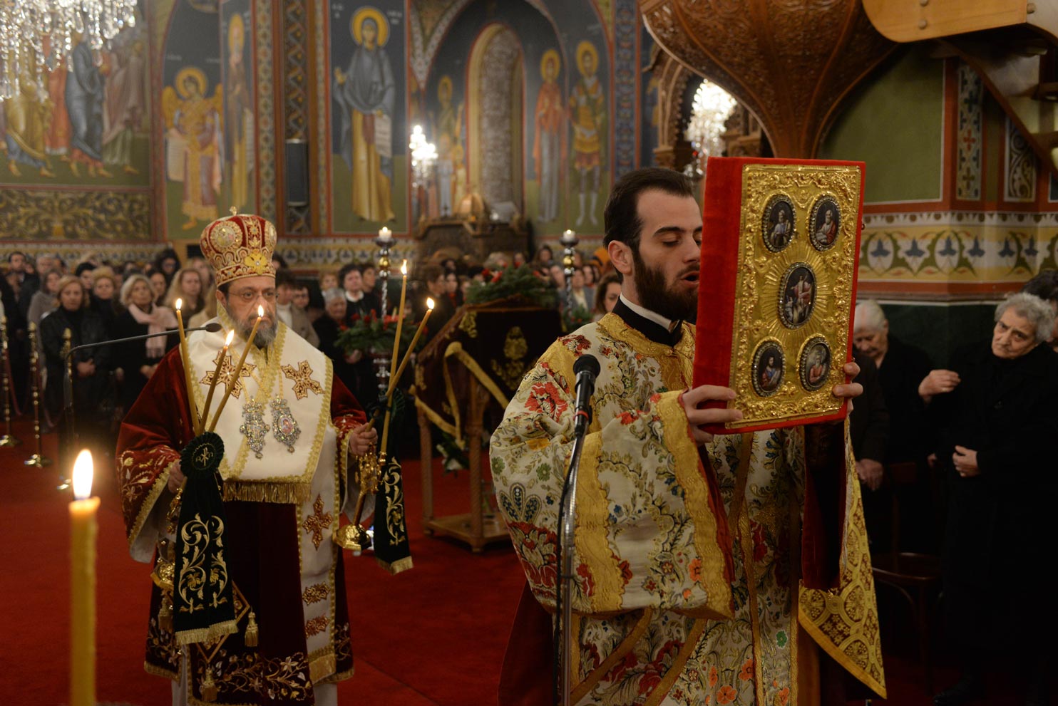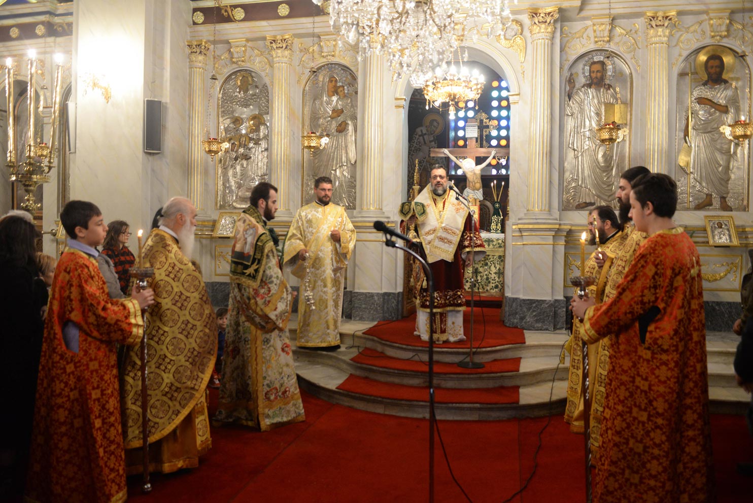 Μετά την ανάγνωση του Ιερού Ευαγγελίου ανεγνώσθη η Ποιμαντορική Χριστουγεννιάτικη Εγκύκλιος του Μητροπολίτη από τον Αρχιμανδρίτη Αλέξιο Σαραντόπουλο.