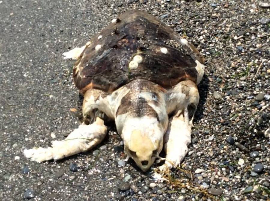 Μία ακόμα νεκρή χελώνα καρέτα καρέτα ξεβράστηκε δυστυχώς σήμερα στην Παραλία της Καλαμάτας.