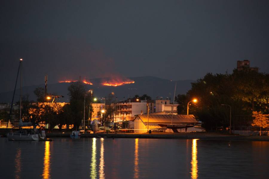 * Η φωτογραφία από το λιμάνι της Καλαμάτας αποτυπώνει το μέγεθος της πυρκαγιάς χθες βράδυ.