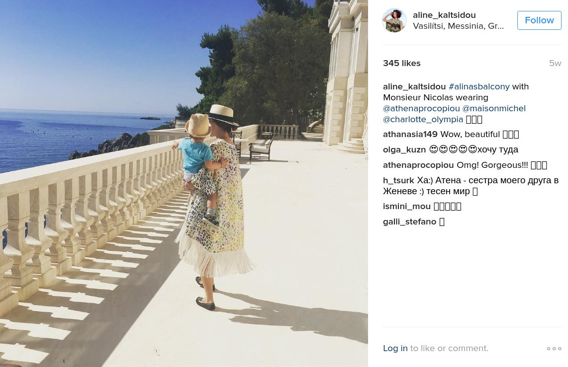 Οι φωτογραφίες που ανέβασε πριν από λίγο καιρό είναι από τις διακοπές της στην Κορώνη. Μέσα από το fashion blog της «La vitrine d’Aline» και των φωτογραφιών της δείχνει παράλληλα με τα φυσικά τοπία, τις εντυπωσιακές στιλιστικές της επιλογές.