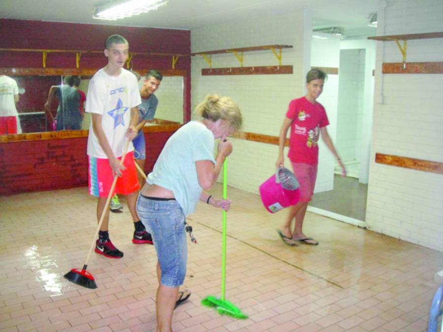 Ο πρόεδρος του Αθλητικού Φορέα του Δήμου Καλαμάτας Νίκος Μπασακίδης βρέθηκε από τις 5 π.μ. στο γήπεδο με συνεργείο του δήμου, ενώ στην συνέχεια ανέλαβαν εθελοντές, κυρίως άνθρωποι του Φιλογυμναστικού Ομίλου Καλαμάτας και του Ακάδημου Καλαμάτας που καθάριζαν τους χώρους της Τέντας πάνω από 5 ώρες.