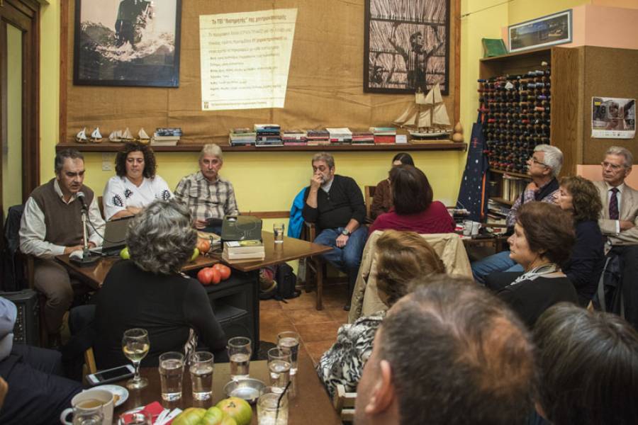 Ομιλητές στην εκδήλωση ήταν οι Ηλίας Μπιτσάνης, Τάσος Κότσιρας και Γεωργία Κουτσούκου.