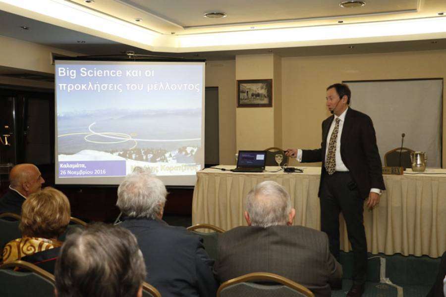 Γράφτηκε από την ΕΛΕΥΘΕΡΙΑ OnlineΣτην Καλαμάτα μίλησε προχθές Σάββατο βράδυ ο φυσικός Μιχάλης Κορατζίνος, ερευνητής στο CERN, με θέμα «Η θεμελιώδης φυσική σήμερα: Big Science (η επιστήμη μεγάλων υποδομών) και οι προκλήσεις του μέλλοντος».