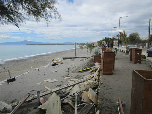 Χθες Κυριακή, η παραλιακή ζώνη της Καλαμάτας ξαναβρήκε τον κανονικό της ρυθμό σε ένα μεγάλο μέρος της, στα καταστήματα (κυρίως προς το λιμάνι) που δεν είχαν υποστεί ζημιές. Ο κόσμος βγήκε για να περπατήσει και κινήθηκε και με τα αυτοκίνητα στη Ναυαρίνου που είχε άμμο και στο δρόμο και στο νότιο πεζοδρόμιο, ενώ σηκωνόταν σκόνη από τα διερχόμενα αυτοκίνητα. Στην ακτή κάποιοι επαγγελματίες καθάριζαν ή προσπαθούσαν να συμμαζέψουν την κατάσταση, ενώ η εικόνα με τις κατεστραμμένες ομπρέλες και κατασκευές έμοιαζε με βομβαρδισμένο τοπίο.