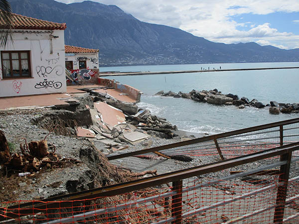 Ζημιές προκλήθηκαν σε παραθαλάσσιες περιοχές των Δήμων Δυτικής Μάνης και Πύλου - Νέστορος, κυρίως σε παραλιακούς δρόμους και λιμενικές υποδομές, ενώ παρά τις προσπάθειες έκλεισε στο Ακρογιάλι ο παραλιακός δρόμος.
