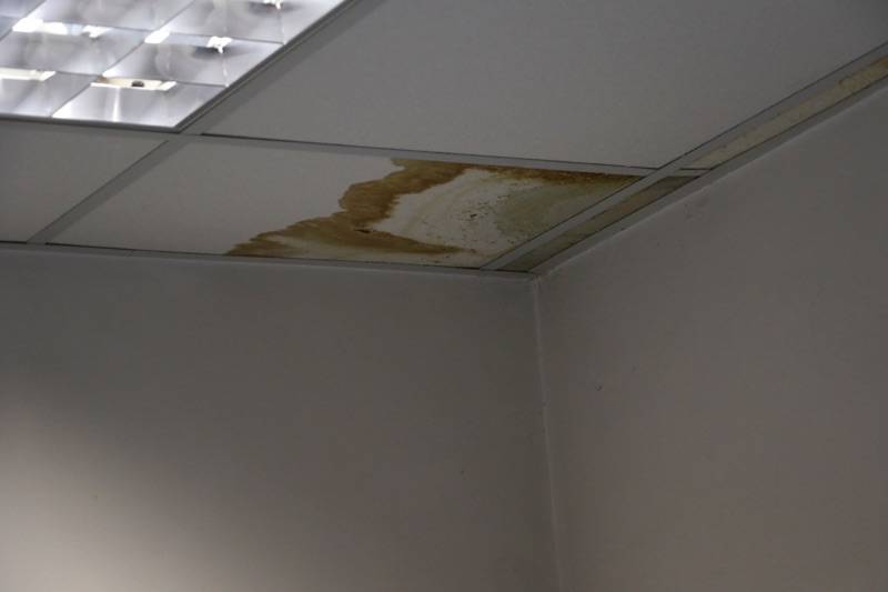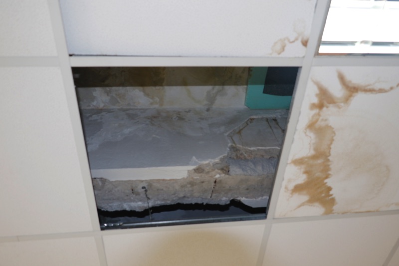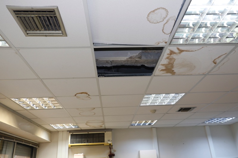 Ο διευθυντής της μονάδας Παν. Κατσαφάδος επισημαίνει επίσης τις μεγάλες φθορές τις οποίες έχει υποστεί η ψευδοροφή στο Μικροβιολογικό Τμήμα (από την πλευρά της οδού Κανάρη) και στο Οδοντιατρικό Τμήμα: “Τα νερά πέφτουν δίπλα στις οδοντιατρικές έδρες, ο γιατρός ή ο ασφαλισμένος κινδυνεύει να γλιστρήσει και επιπλέον ένας καινούργιος εξοπλισμός κινδυνεύει να καταστραφεί”, αναφέρει χαρακτηριστικά, ενώ, όπως λέει, με κάποιο τρόπο νερά περνάνε και στο υπόγειο.