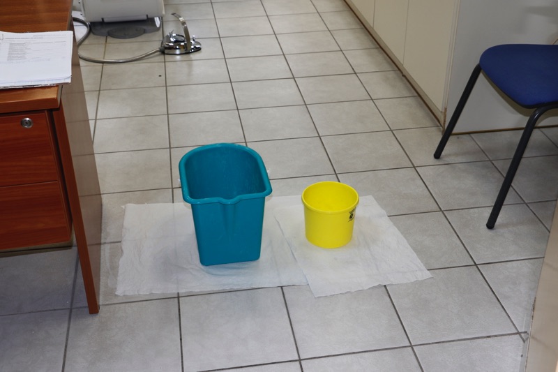 Η οδοντίατρος Χριστίνα Μούστου επισημαίνει το πολύ σοβαρό πρόβλημα, καθώς και τις ενέργειες του διευθυντή για να λυθεί. “Προσωπικά ανησυχώ για την ασφάλειά μας, πόση ζημιά έχει γίνει, τι μπορεί να προκύψει, γιατί στο ιατρείο μπαίνει πολύς κόσμος και μεγάλης ηλικίας”, αναφέρει. Οσο για τους... κουβάδες στην υποδοχή “πολλοί άνθρωποι δεν τους βλέπουν και είμαι συνεχώς σε άγχος να μην πέσουν και τραυματιστεί κάποιος”.