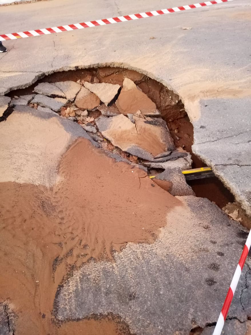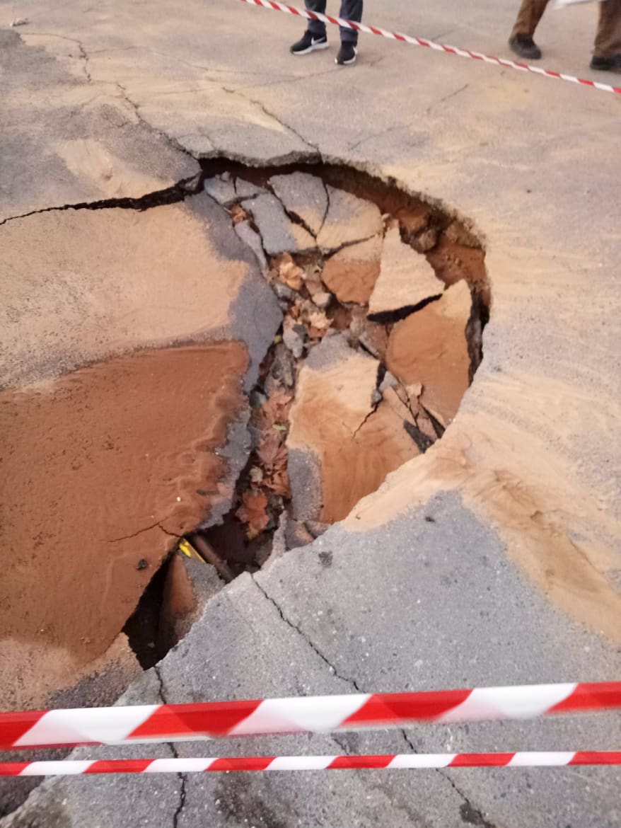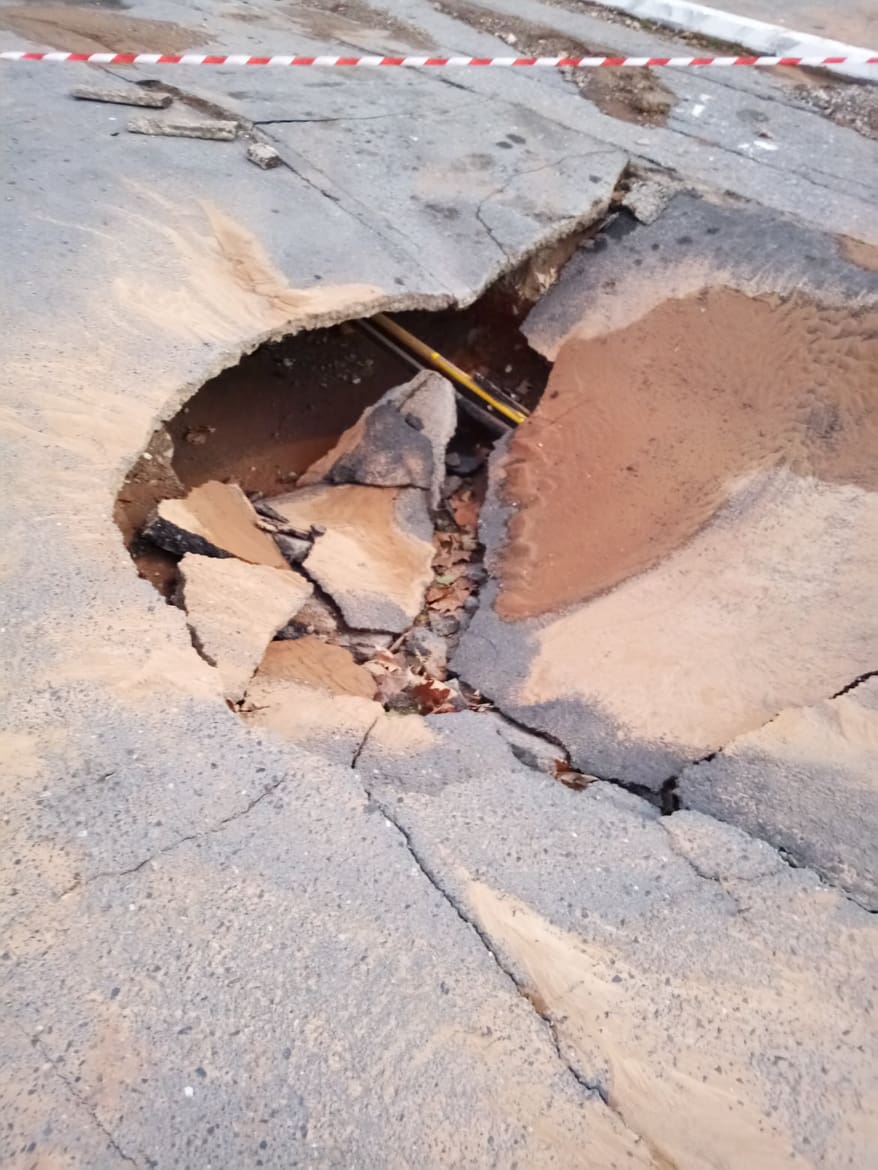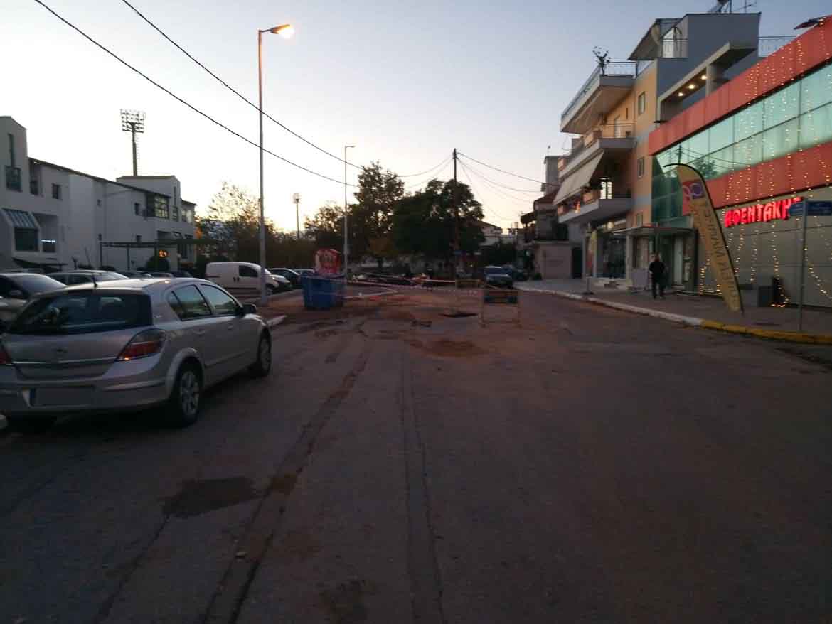 Πρόκειται προφανώς για κάποιο πρόβλημα με τον αγωγό ύδρευσης στην οδό Καλλιπατείρας στο ύψος του χώρου στάθμευσης των Εργατικών Κατοικιών του Ανατολικού Κέντρου. Ηδη στο σημείο υπάρχει ειδική σήμανση για την αποφυγή ατυχημάτων.