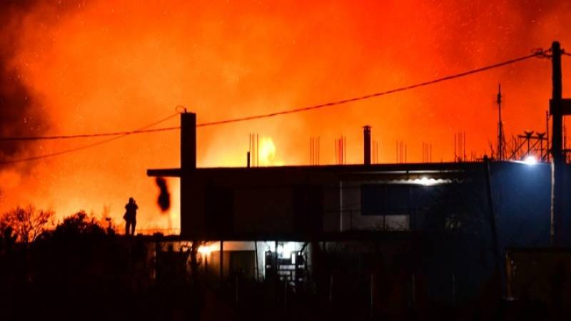 Στην περιοχή πνέουν πολύ δυνατοί άνεμοι ενώ η πυρκαγιά εκδηλώθηκε ανάμεσα στους Μύλους και την περιοχή Αγία Άννα στο Τημένιο με δύο εστίες και κατευθύνεται προς την παραλία.
