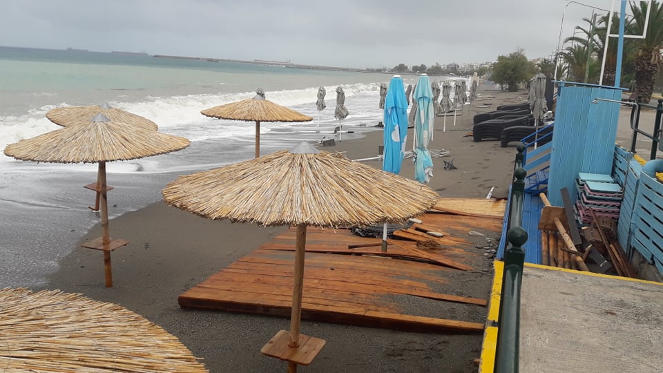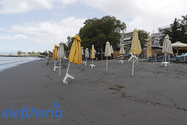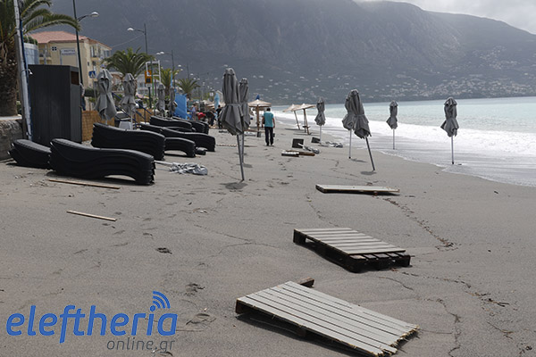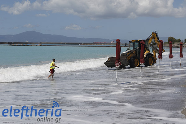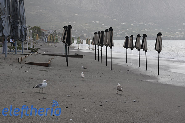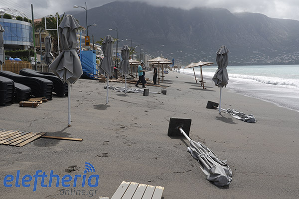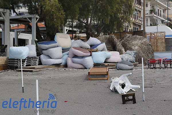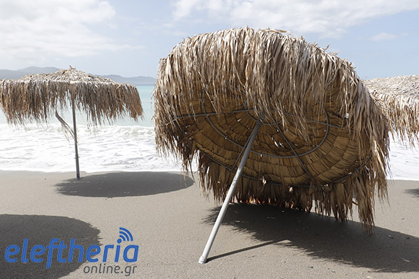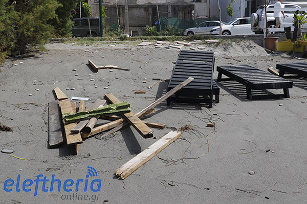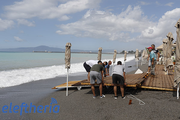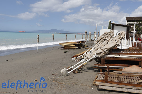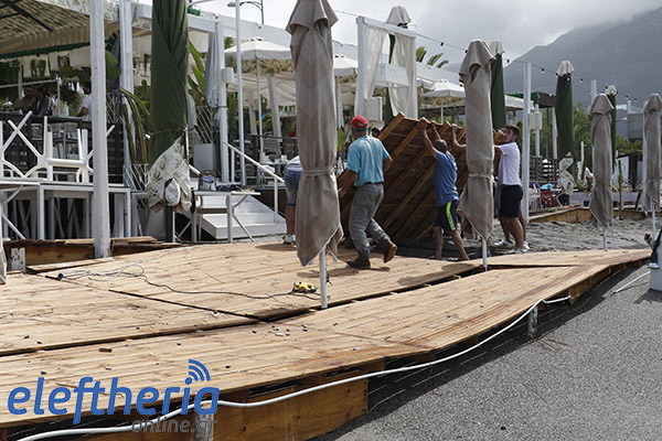Παρά τις προσπάθειες αρκετών επαγγελματιών να μαζέψουν άρον άρον ξαπλώστρες, ομπρέλες κτλ, δεν αποφεύχθηκαν οι ζημιές με το τριήμερο του Αγίου Πνεύματος να μην ξεκινάει με τον τρόπο, που περίμεναν.