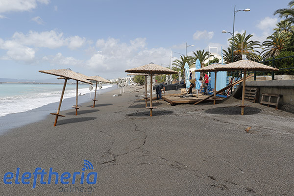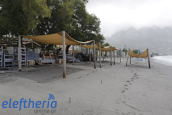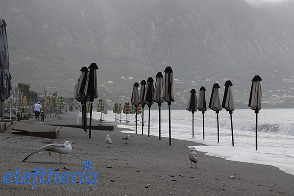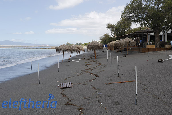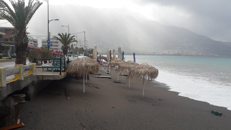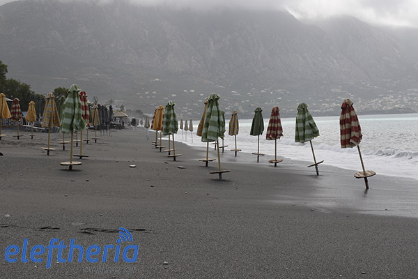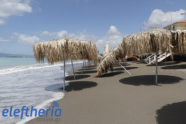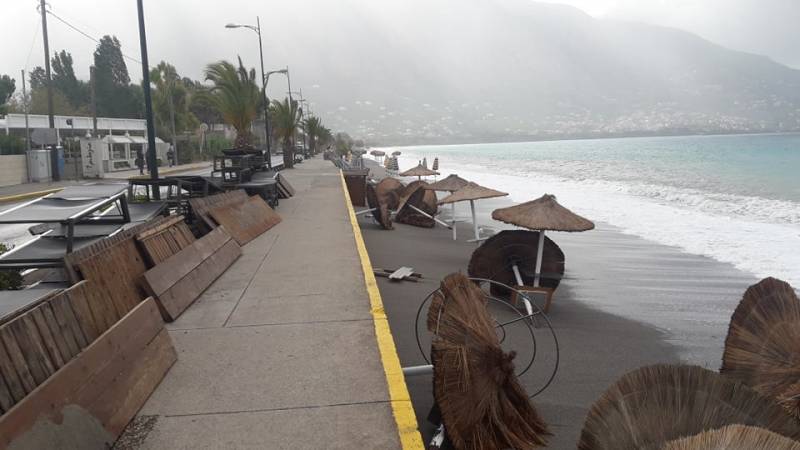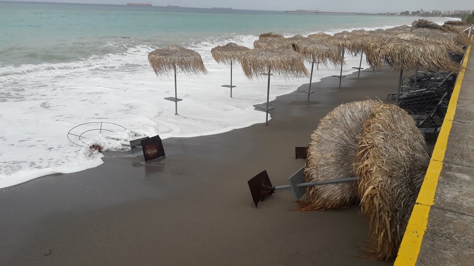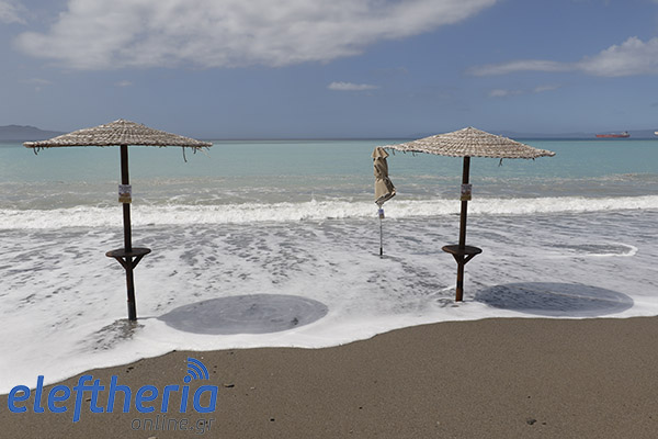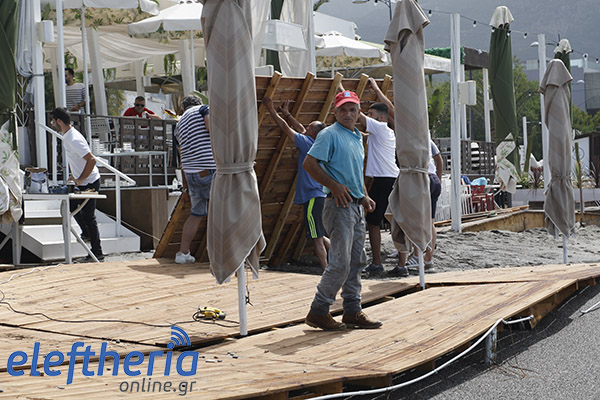 Παρά τις προσπάθειες αρκετών επαγγελματιών να μαζέψουν άρον άρον ξαπλώστρες, ομπρέλες κτλ, δεν αποφεύχθηκαν οι ζημιές με το τριήμερο του Αγίου Πνεύματος να μην ξεκινάει με τον τρόπο, που περίμεναν.