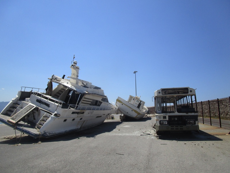 Ειδικότερα, ζητώντας την άποψη του Δημοτικού Λιμενικού για την εικόνα του νεκροταφείου σκαφών (και ενός καμένου λεωφορείου), ο πρόεδρός του Κ. Αθανασόπουλος μας είπε, χωρίς να κρύψει την ενόχλησή του: “Στο λιμάνι εμπλέκονται, διοικούν 3 υπηρεσίες, το Τελωνείο, το Λιμεναρχείο και το Δημοτικό Λιμενικό Ταμείο. Τα σκάφη αυτά έχουν κατασχεθεί για παράνομη μεταφορά παράνομων μεταναστών. Ηταν στο λιμάνι, βυθίστηκαν και ήρθε ειδικός γερανός και τα έβγαλε. Το Δημοτικό Λιμενικό Ταμείο πλήρωσε γύρω στα 6.000 ευρώ το καθένα για να τα βγάλει.