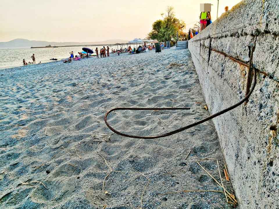 Οπως τόνισε στην "Ε" πατέρας τετραμελούς οικογένειας που έκανε το μπάνιο της την περασμένη εβδομάδα στην ακτή, το ένα από τα παιδιά του για λίγα χιλιοστά δεν τραυματίστηκε στο μάτι από αιχμηρό σίδερο, όταν κατευθύνθηκε κοντά στο πεζοδρόμιο, παίζοντας με τον αδερφό του.