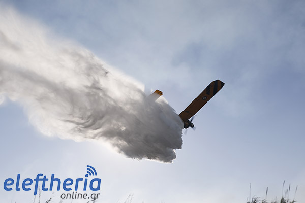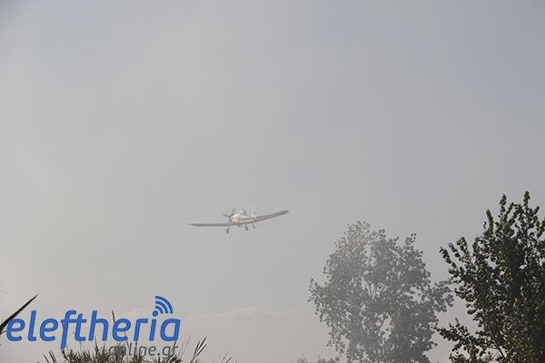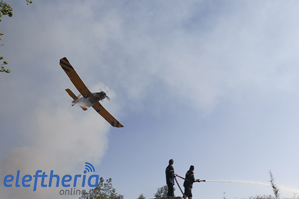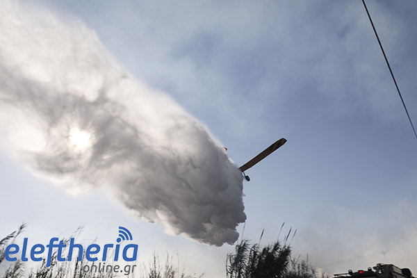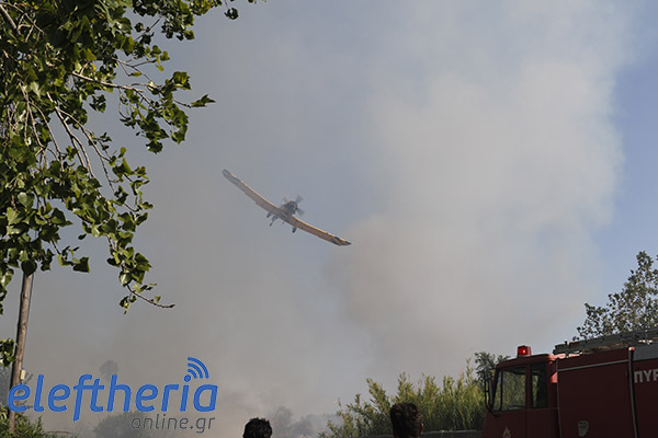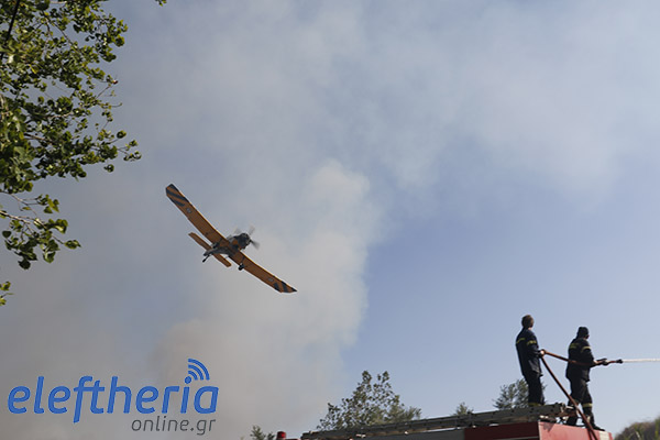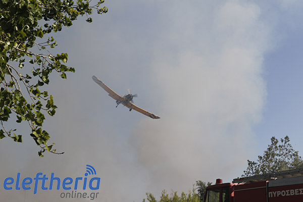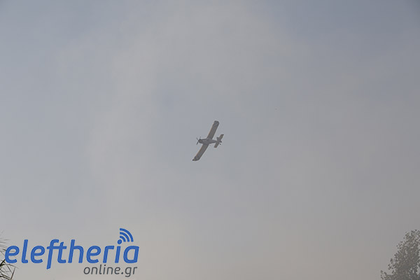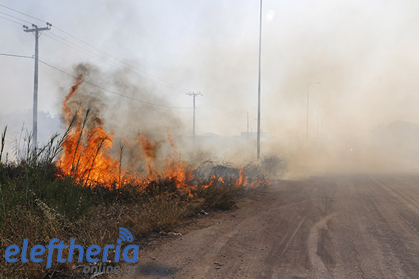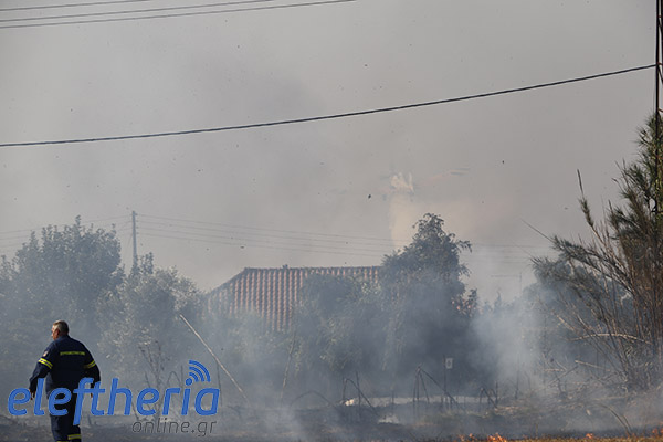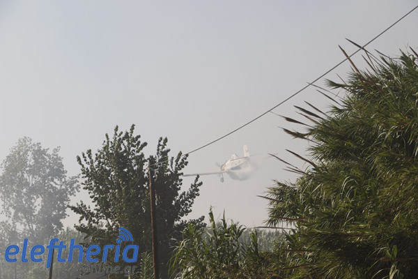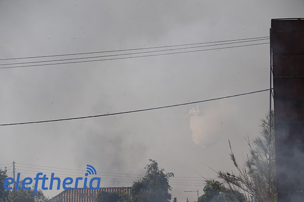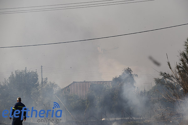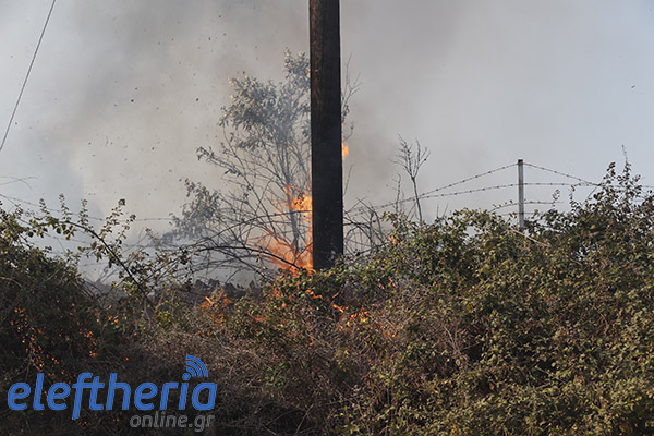 Στην πλευρά πάνω από το δρόμο η φωτιά είχε αναπτυχθεί σε δύο μέτωπα.