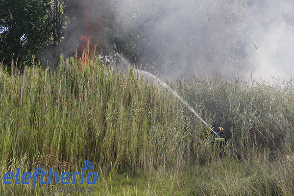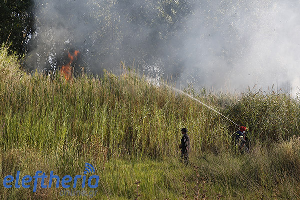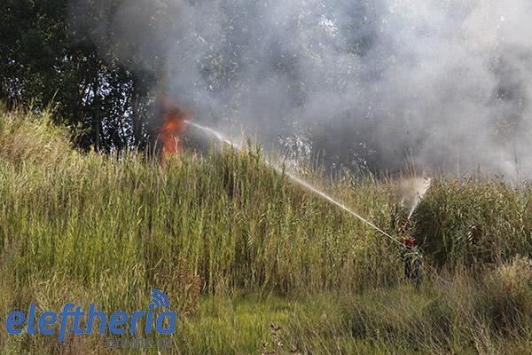 Οι φωτιές έκαψαν συνολικά 40 στρέμματα κυρίως με καλάμια και ξερά χόρτα, 25 στη νότια πλευρά και 15 στη βόρεια.
