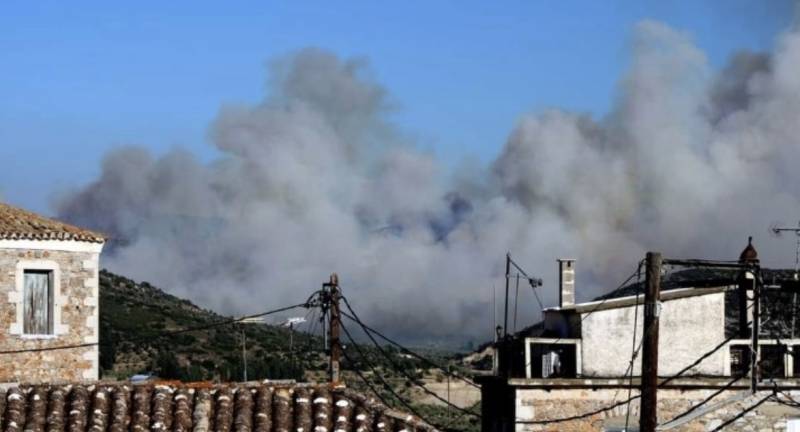 Νωρίτερα - για προληπτικούς λόγους- απομακρύνθηκαν, με ίδια μέσα, οι κάτοικοι πέντε οικισμών. Η φωτιά, σύμφωνα με την πυροσβεστική, έχει μεγάλη περίμετρο, ωστόσο οι καιρικές συνθήκες έχουν βελτιωθεί.