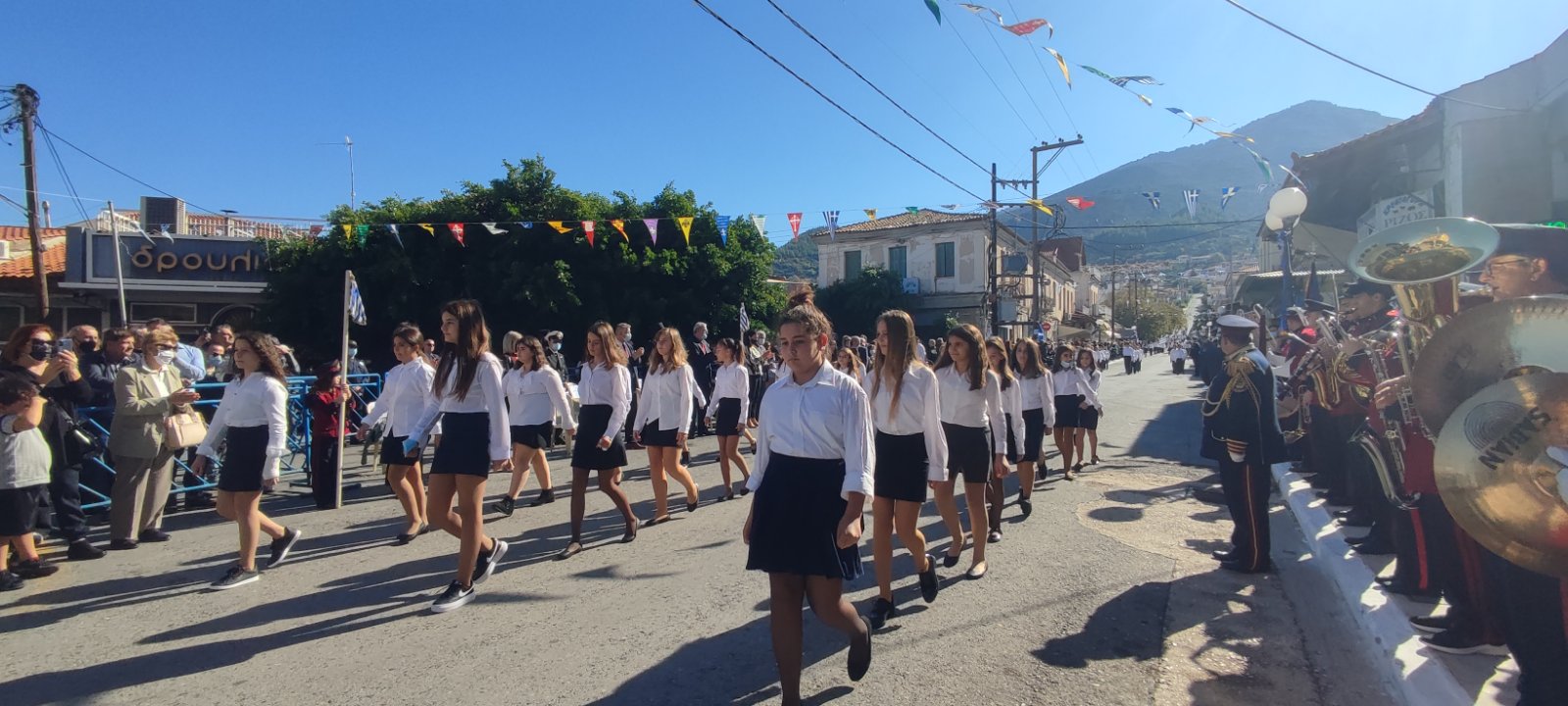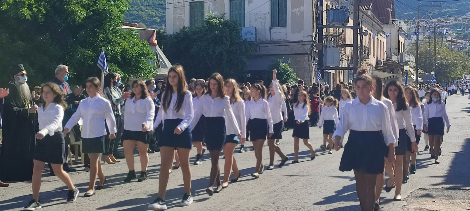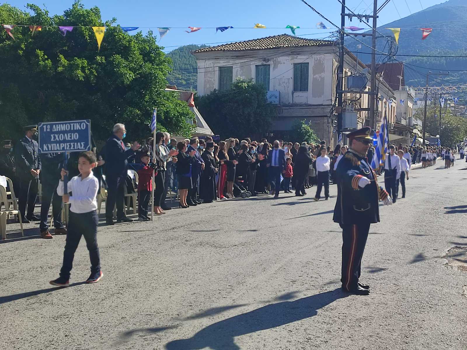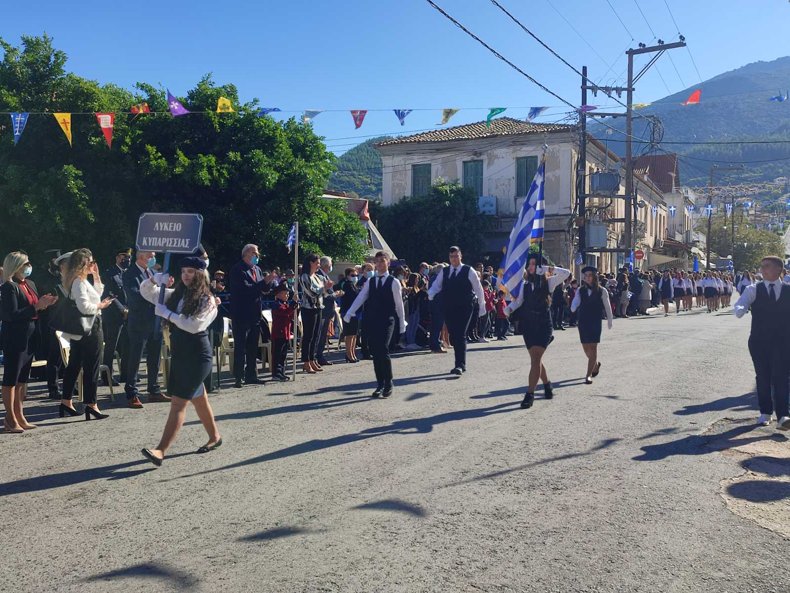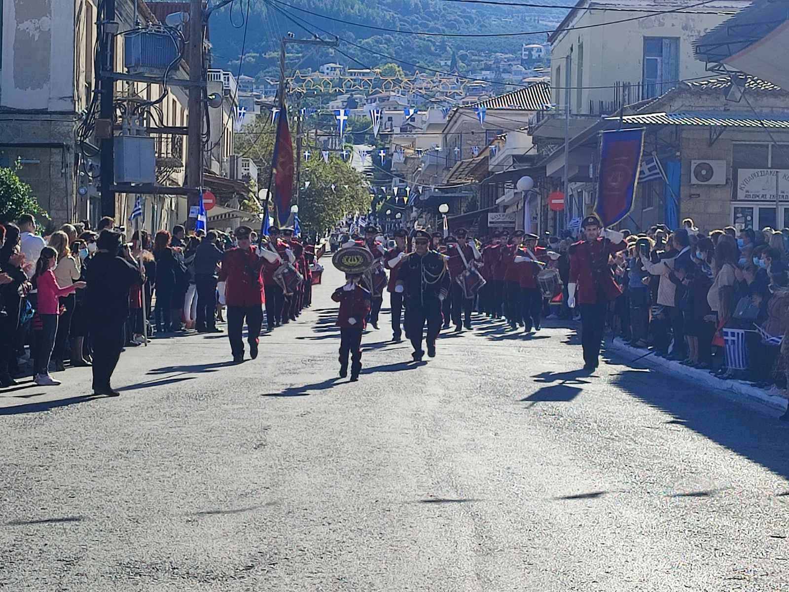Ακολούθησε η μαθητική παρέλαση με προπομπό τη Δημοτική Φιλαρμονική Κυπαρισσίας και τμήματα από όλα τα σχολεία της πόλης, ενώ έκλεισε με τμήματα από τους Αθλητικούς Συλλόγους ΝΟΚΥ, ΔΙΩΝ και ΑΣΤ.