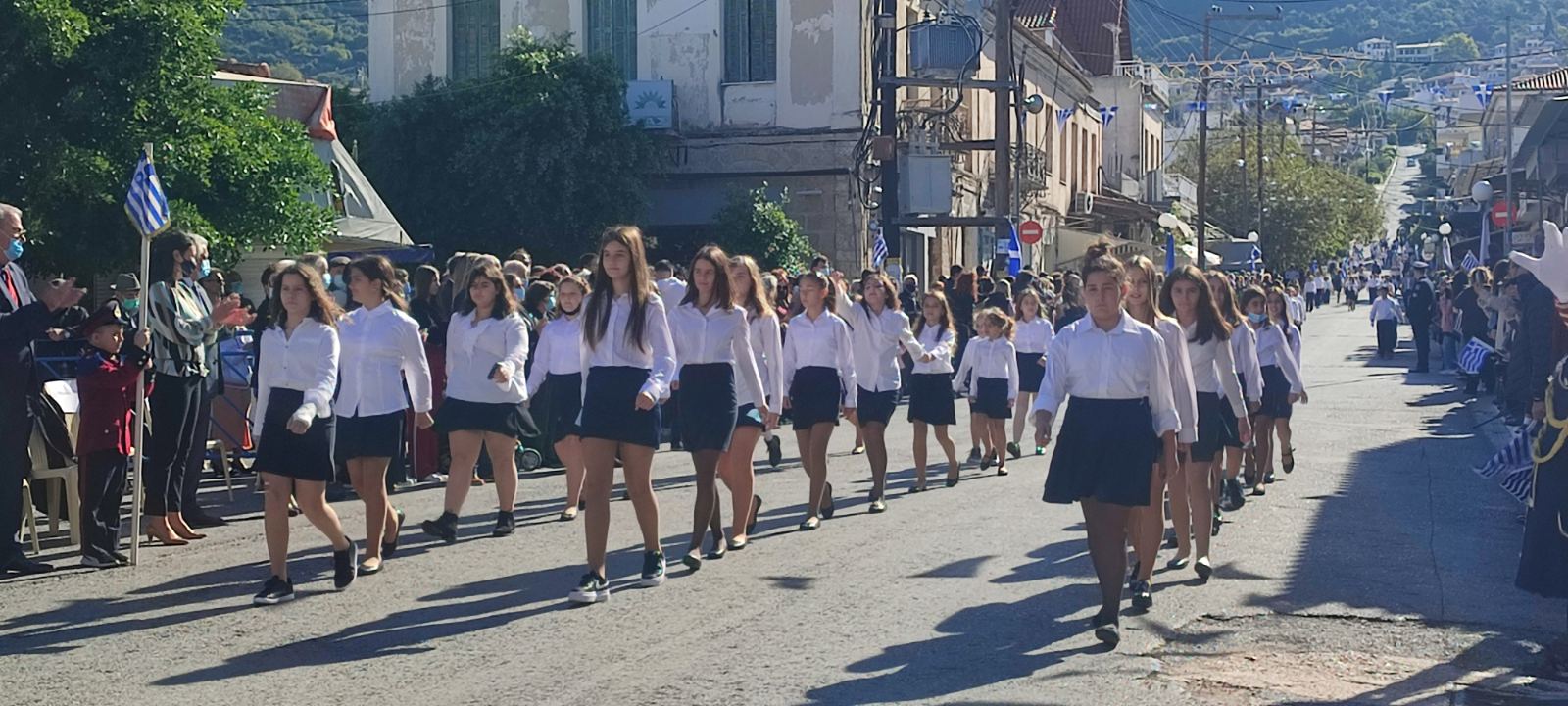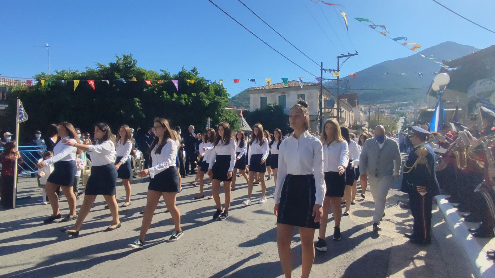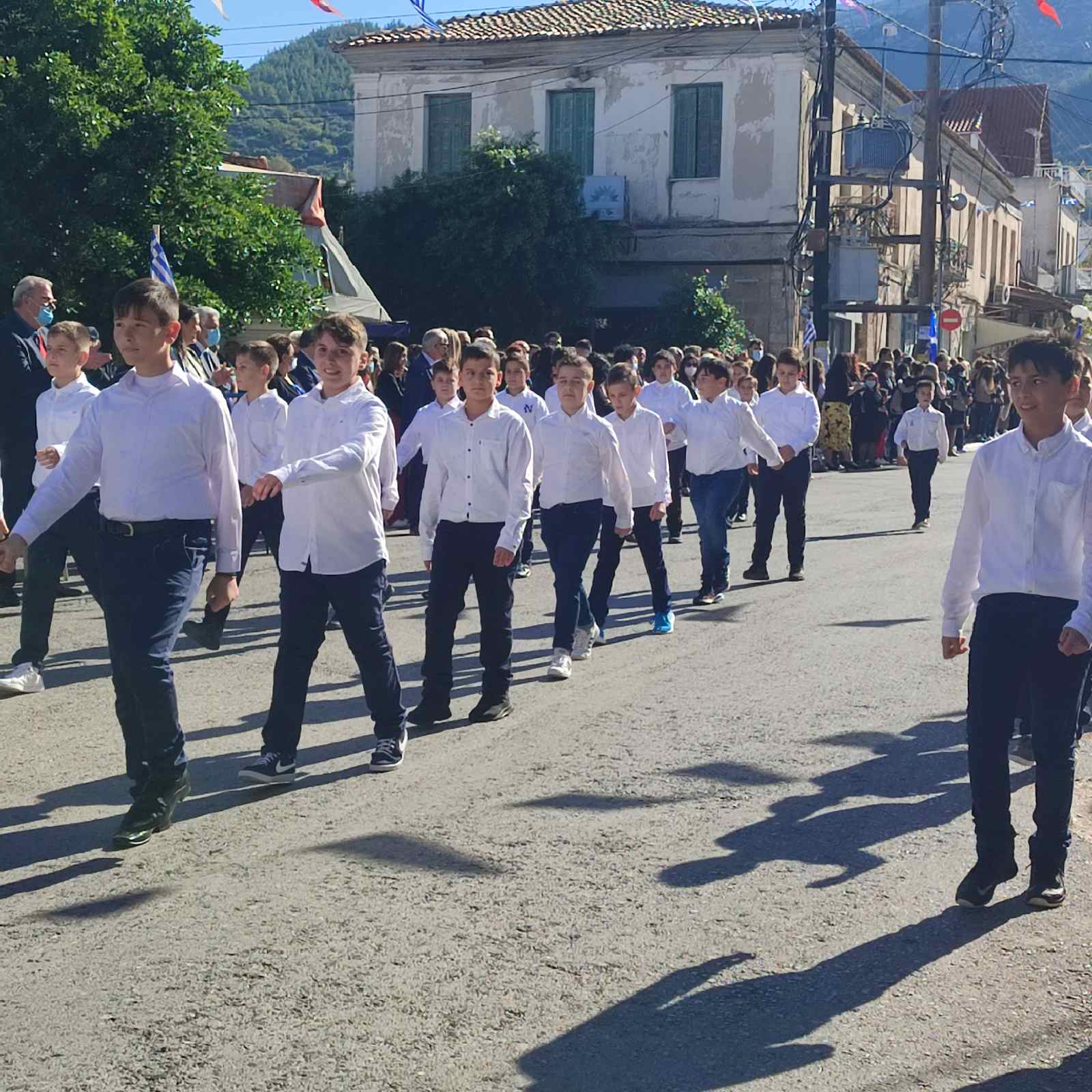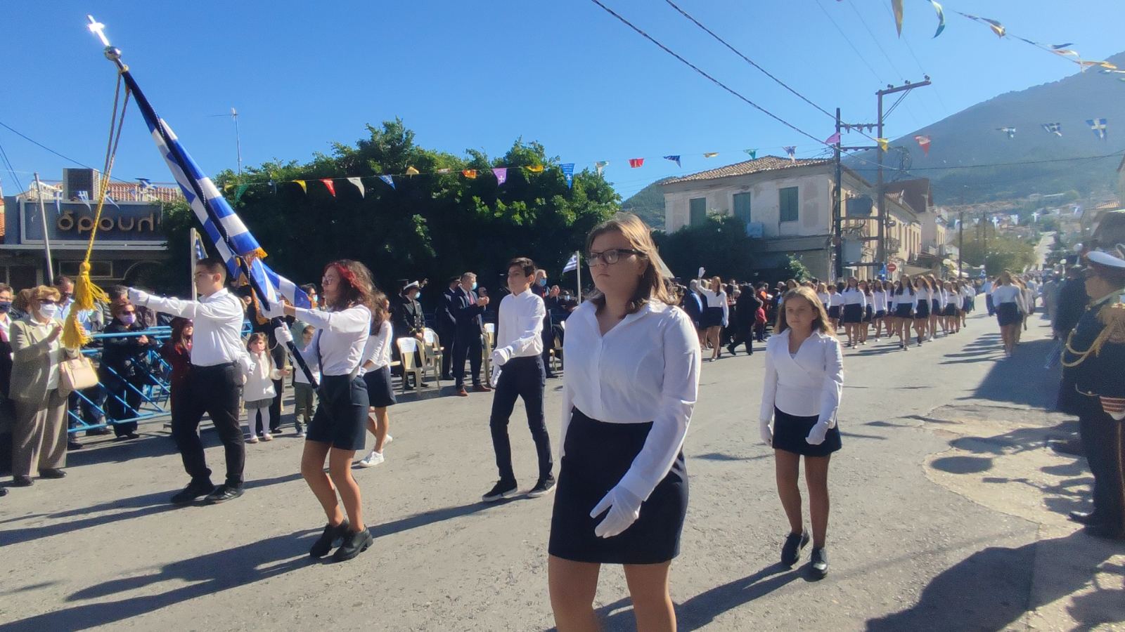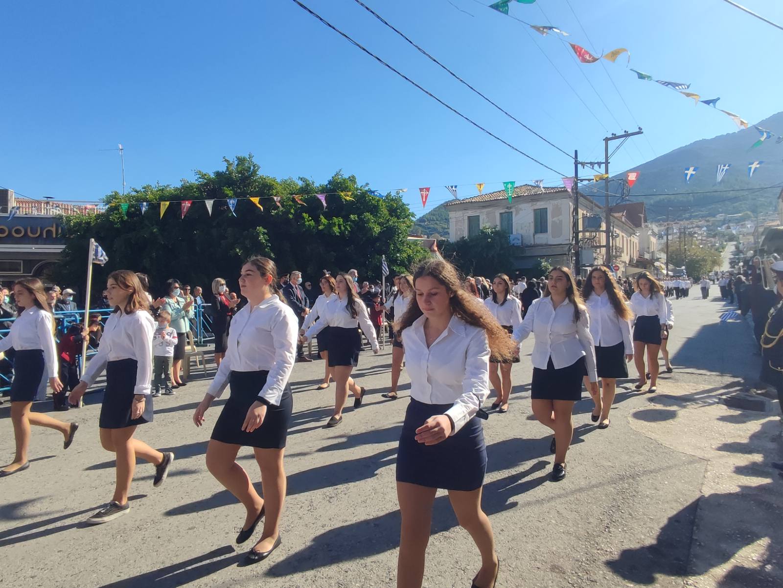 Ακολούθησε η μαθητική παρέλαση με προπομπό τη Δημοτική Φιλαρμονική Κυπαρισσίας και τμήματα από όλα τα σχολεία της πόλης, ενώ έκλεισε με τμήματα από τους Αθλητικούς Συλλόγους ΝΟΚΥ, ΔΙΩΝ και ΑΣΤ.