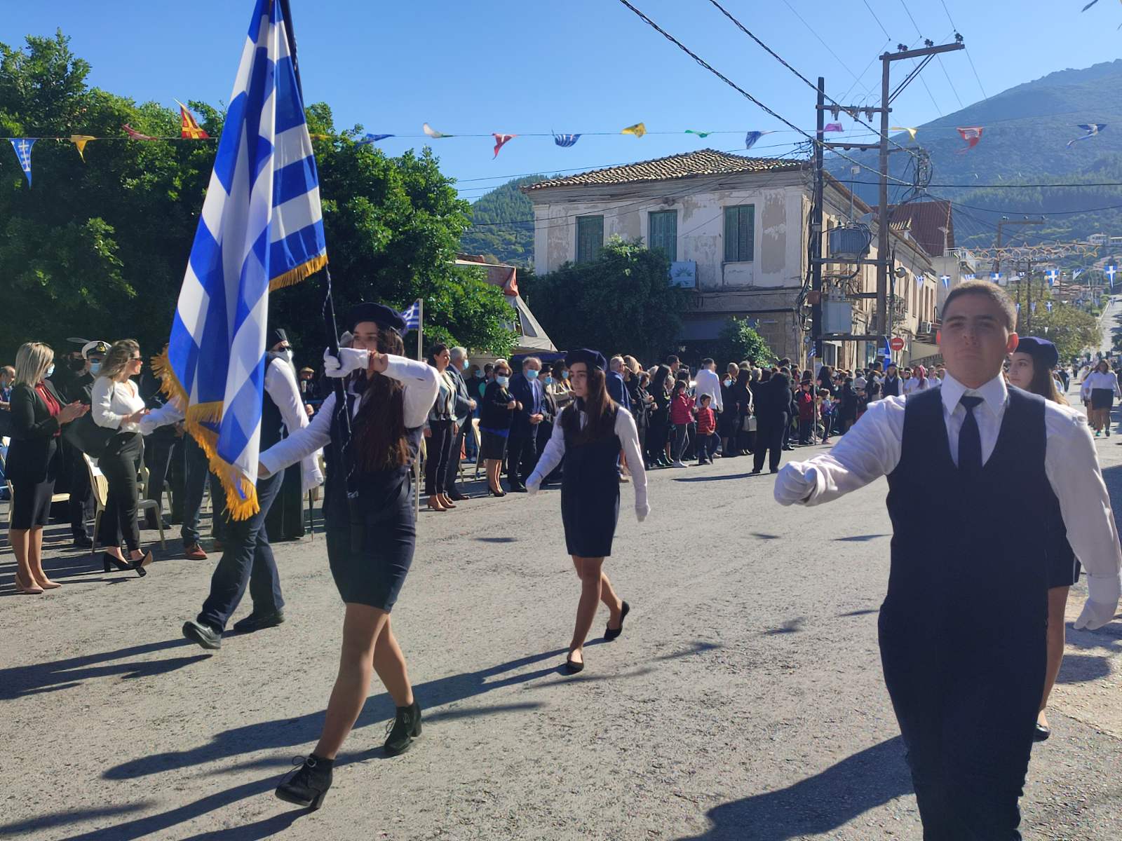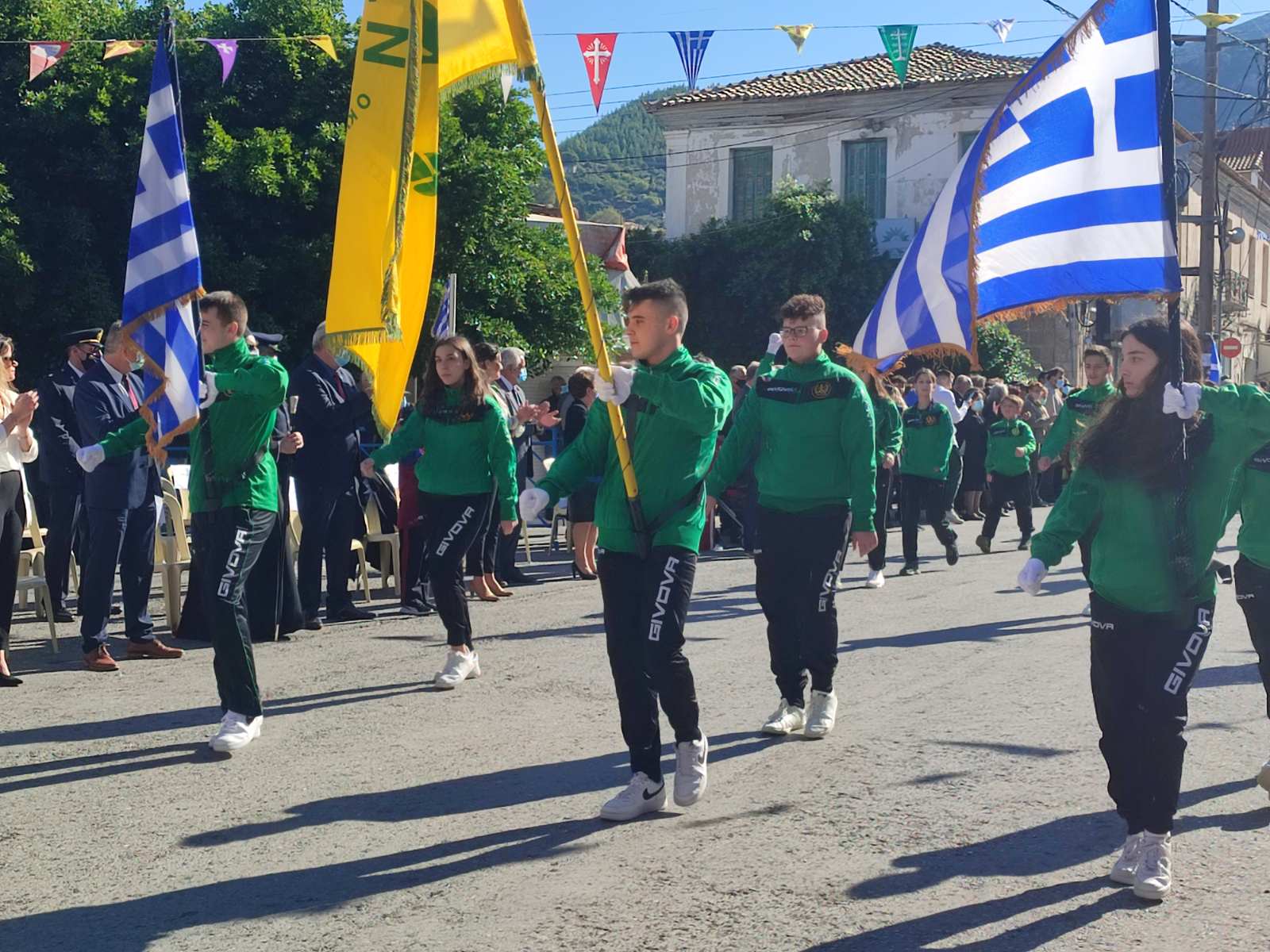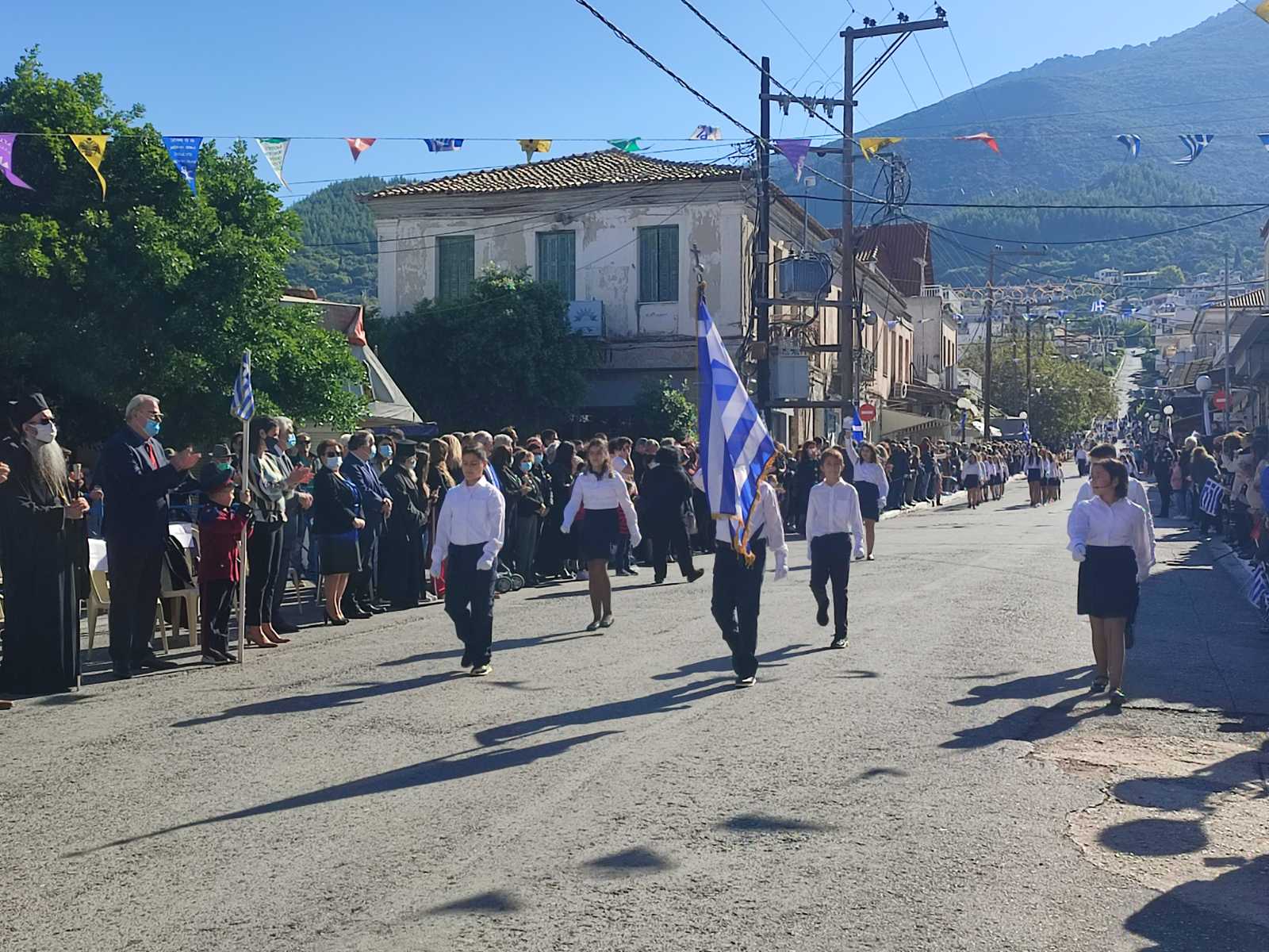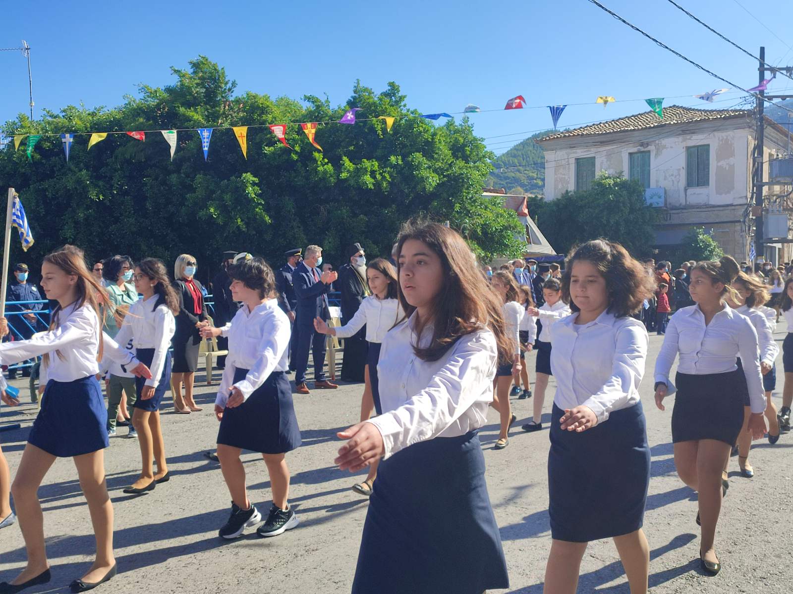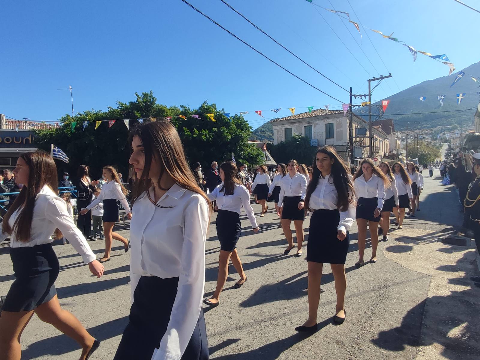 Ακολούθησε η μαθητική παρέλαση με προπομπό τη Δημοτική Φιλαρμονική Κυπαρισσίας και τμήματα από όλα τα σχολεία της πόλης, ενώ έκλεισε με τμήματα από τους Αθλητικούς Συλλόγους ΝΟΚΥ, ΔΙΩΝ και ΑΣΤ.