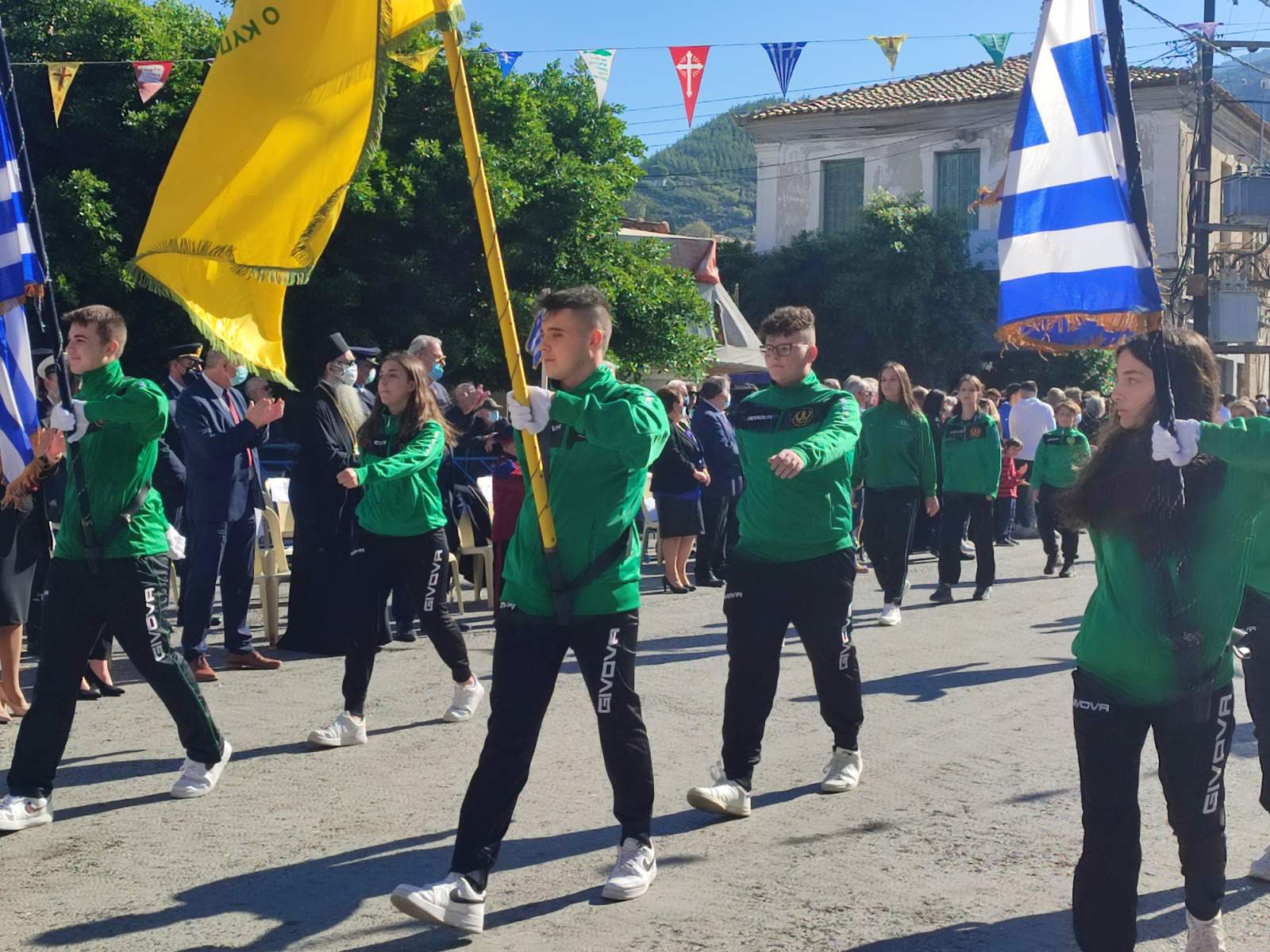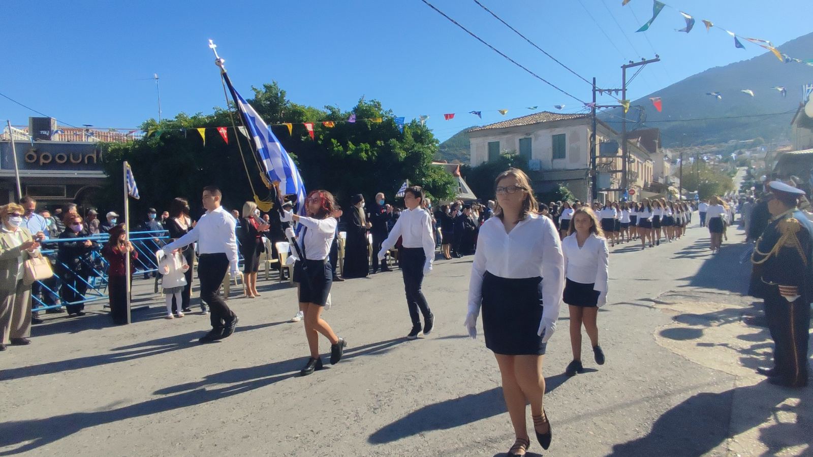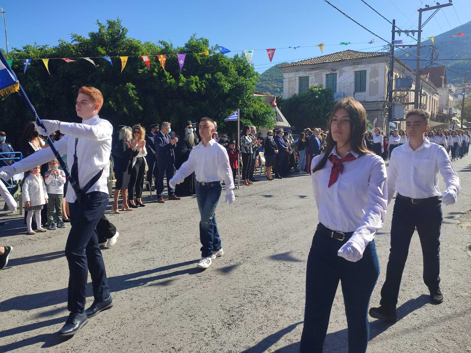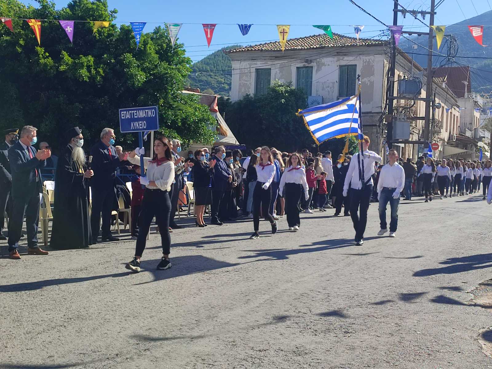 Ακολούθησε η μαθητική παρέλαση με προπομπό τη Δημοτική Φιλαρμονική Κυπαρισσίας και τμήματα από όλα τα σχολεία της πόλης, ενώ έκλεισε με τμήματα από τους Αθλητικούς Συλλόγους ΝΟΚΥ, ΔΙΩΝ και ΑΣΤ.