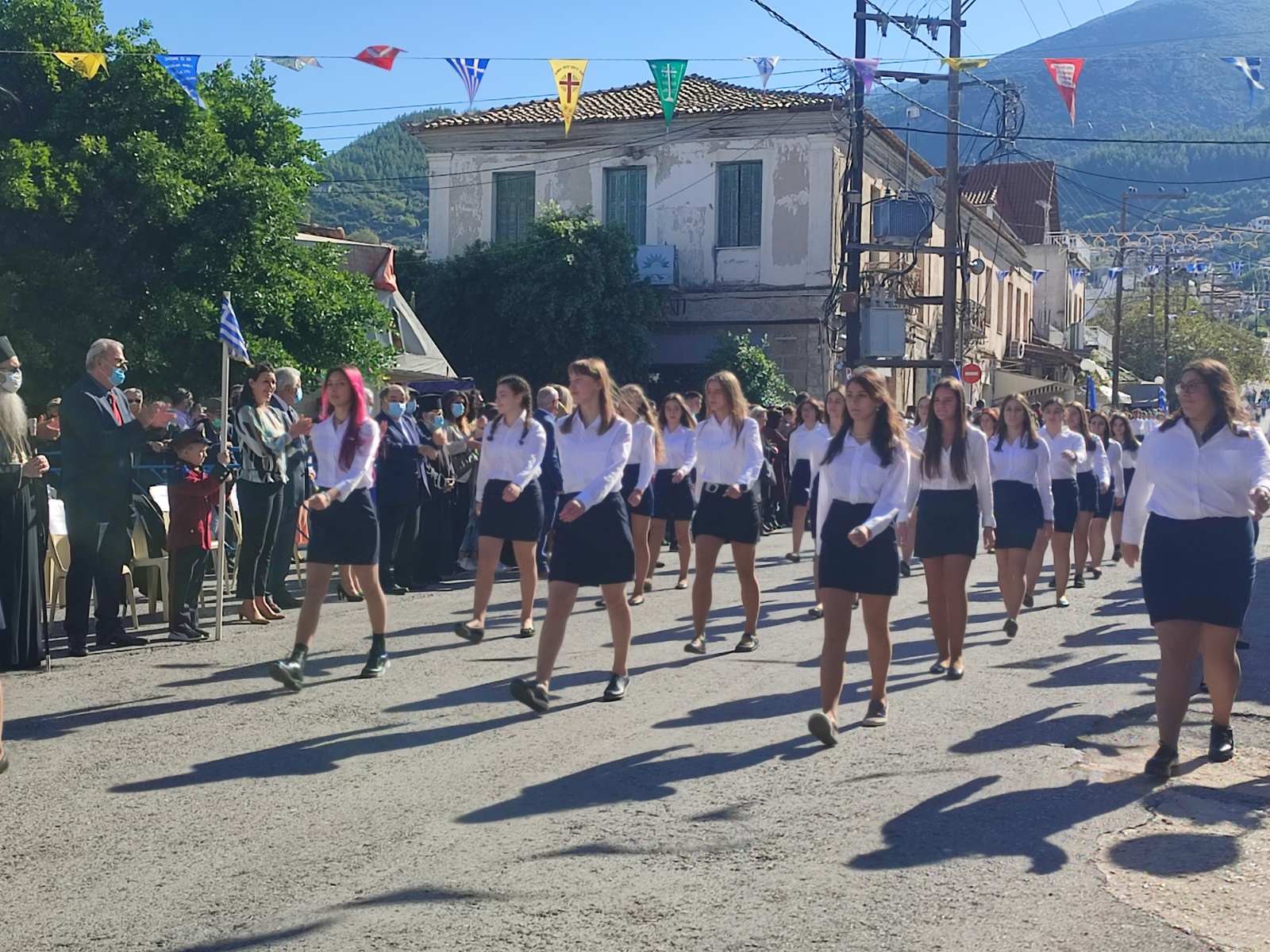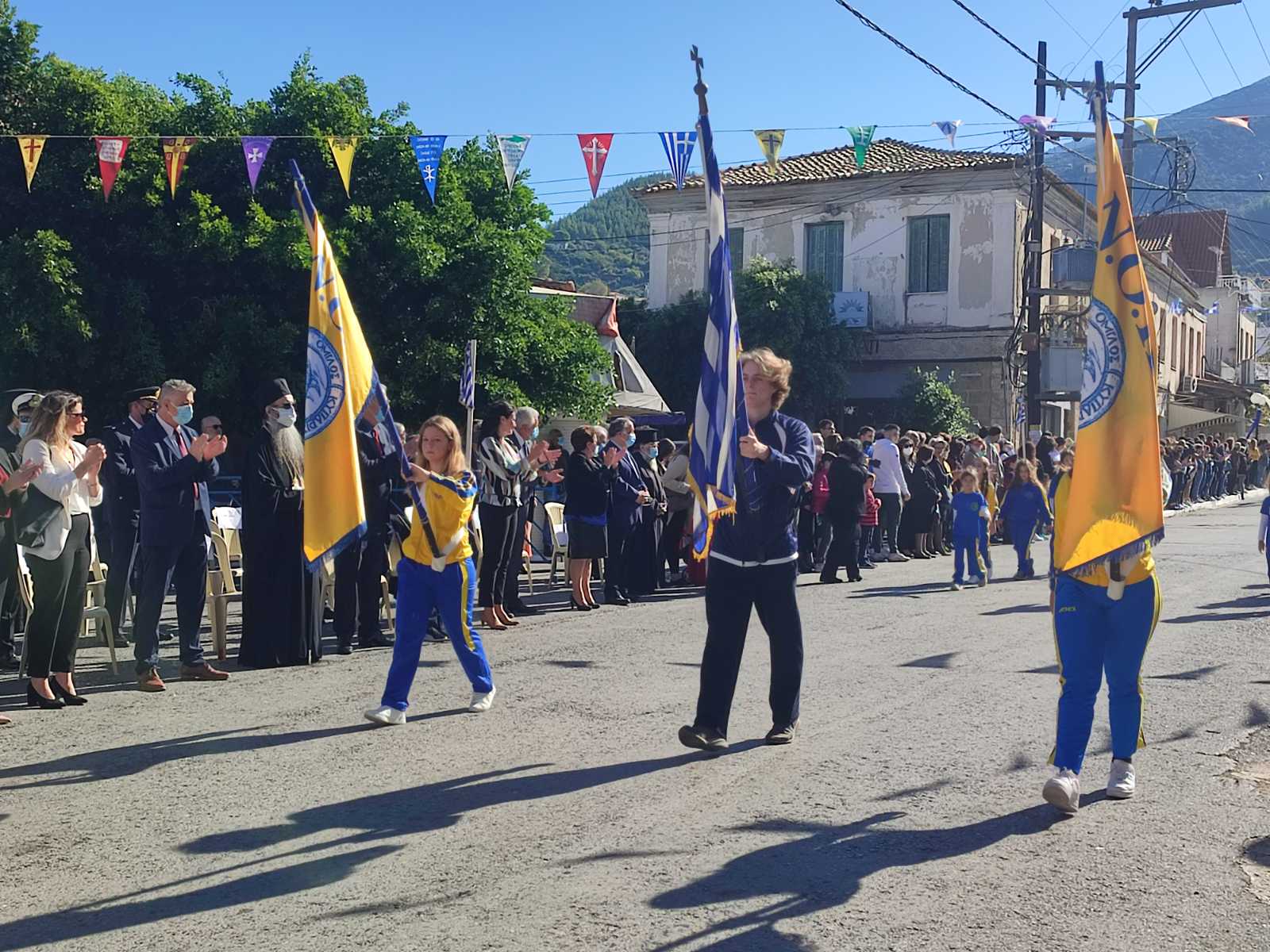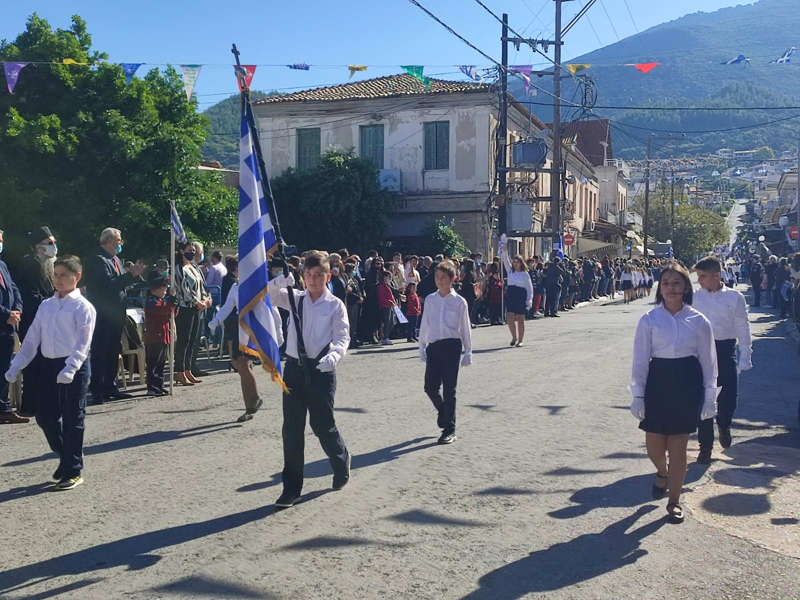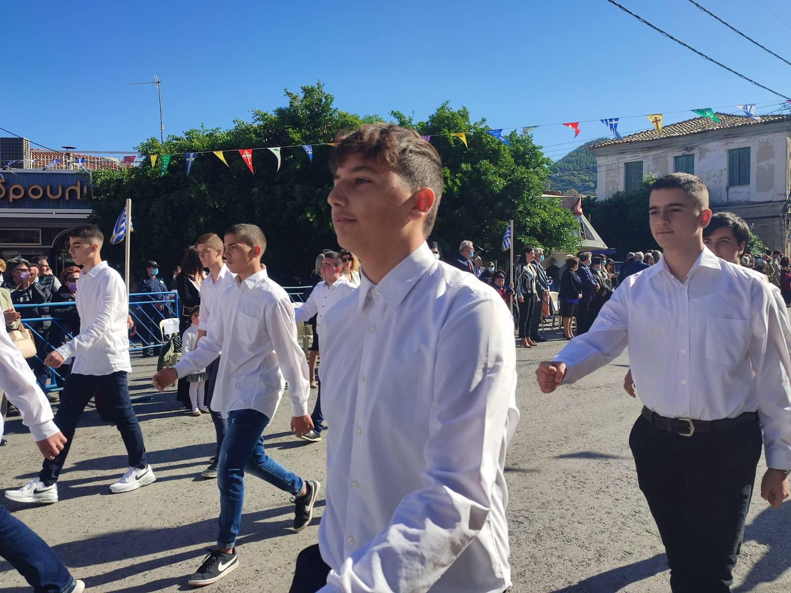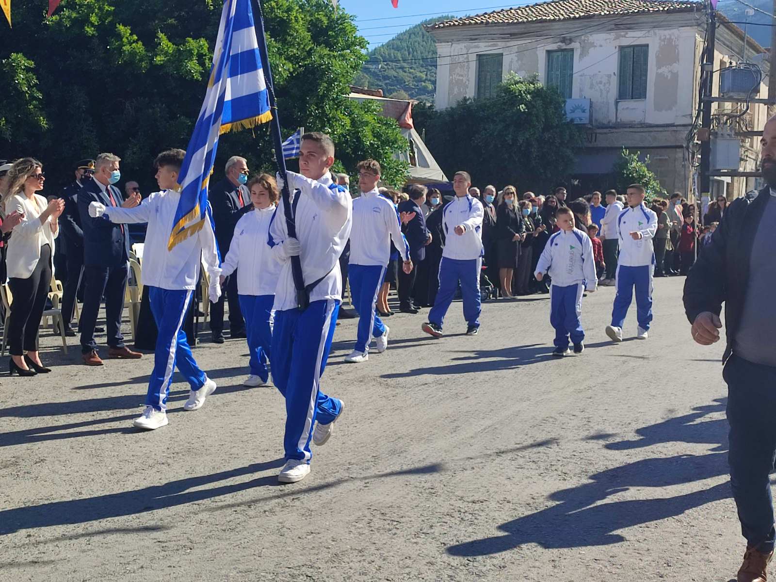 Ακολούθησε η μαθητική παρέλαση με προπομπό τη Δημοτική Φιλαρμονική Κυπαρισσίας και τμήματα από όλα τα σχολεία της πόλης, ενώ έκλεισε με τμήματα από τους Αθλητικούς Συλλόγους ΝΟΚΥ, ΔΙΩΝ και ΑΣΤ.