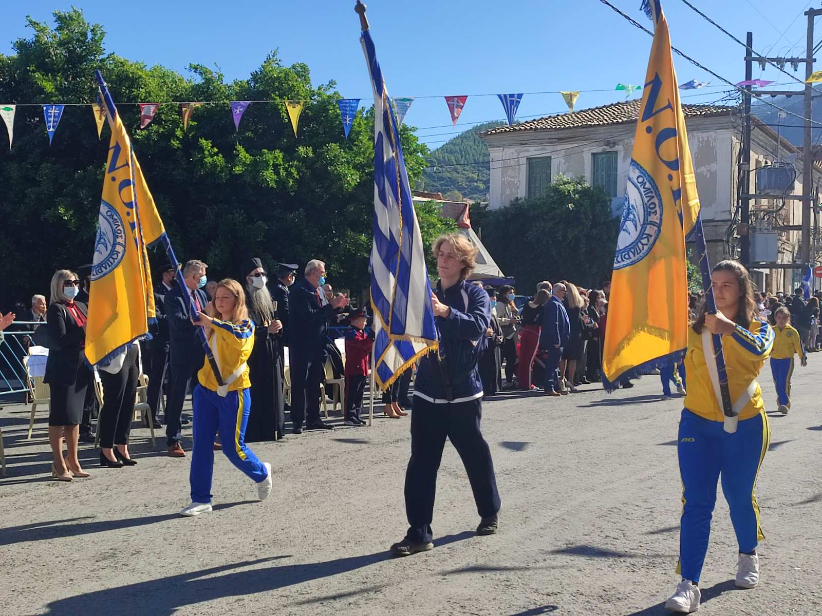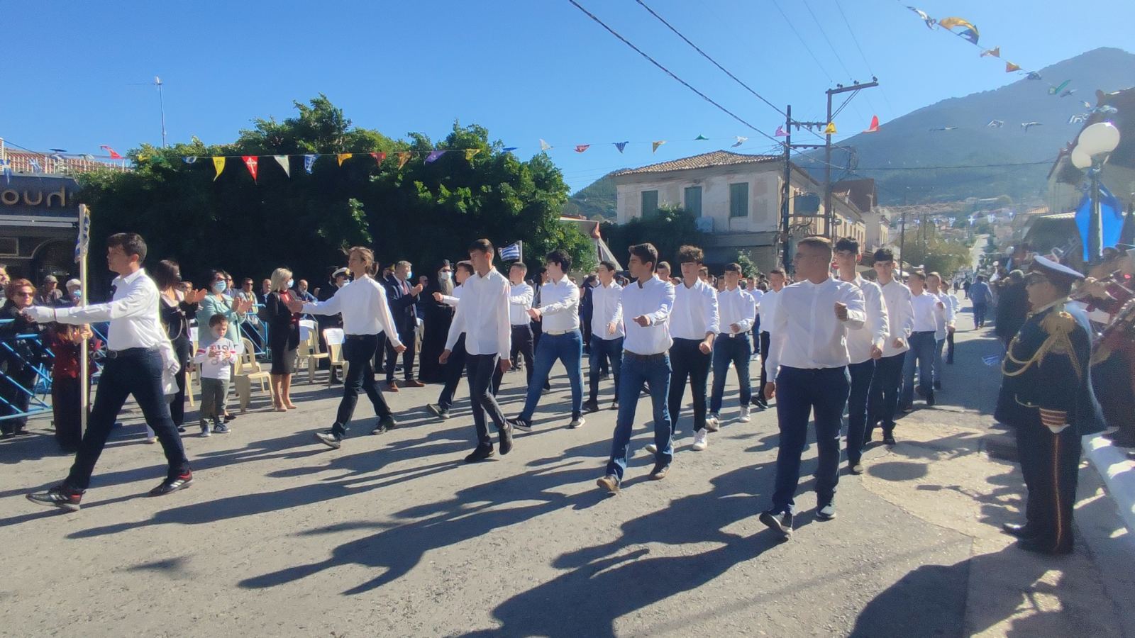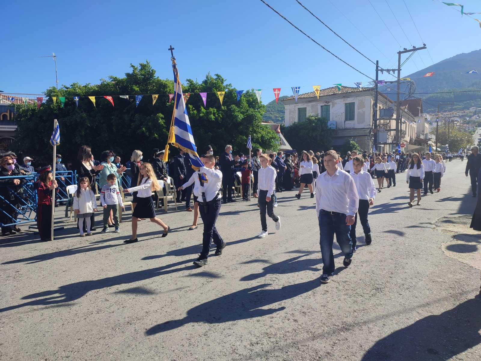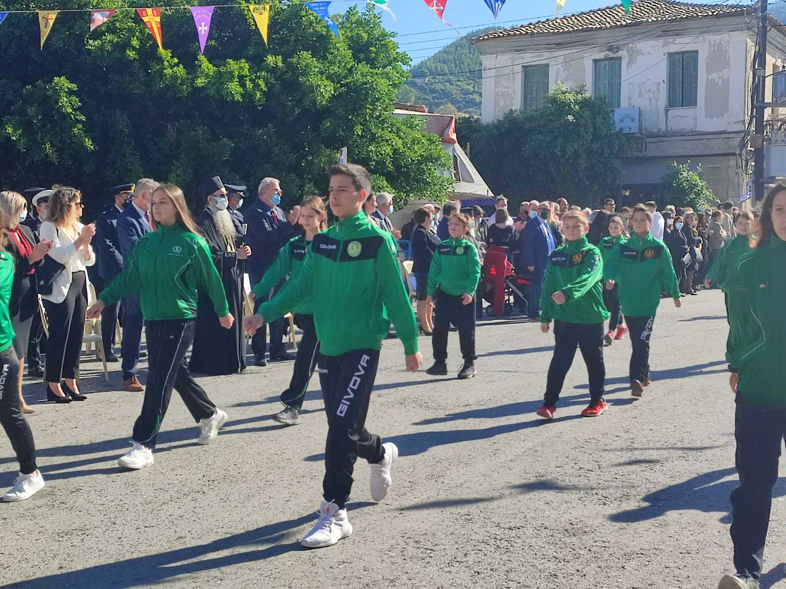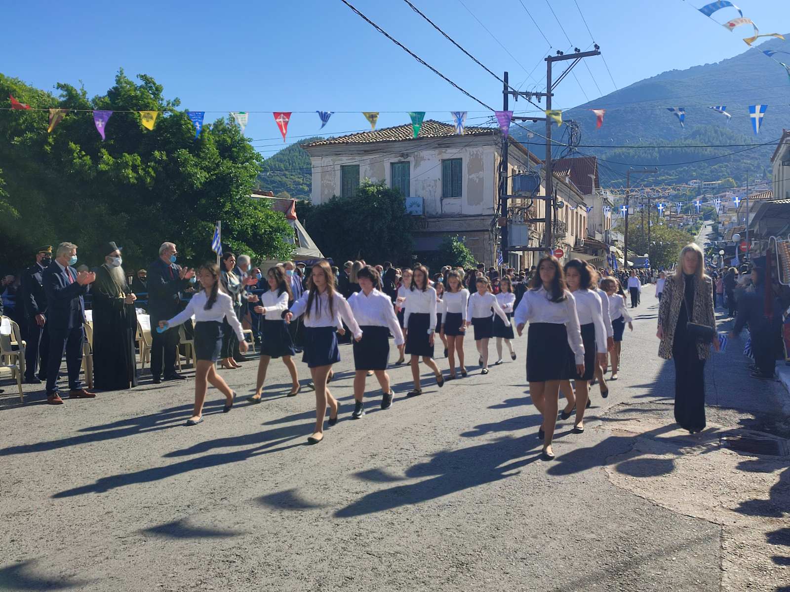 Ακολούθησε η μαθητική παρέλαση με προπομπό τη Δημοτική Φιλαρμονική Κυπαρισσίας και τμήματα από όλα τα σχολεία της πόλης, ενώ έκλεισε με τμήματα από τους Αθλητικούς Συλλόγους ΝΟΚΥ, ΔΙΩΝ και ΑΣΤ.