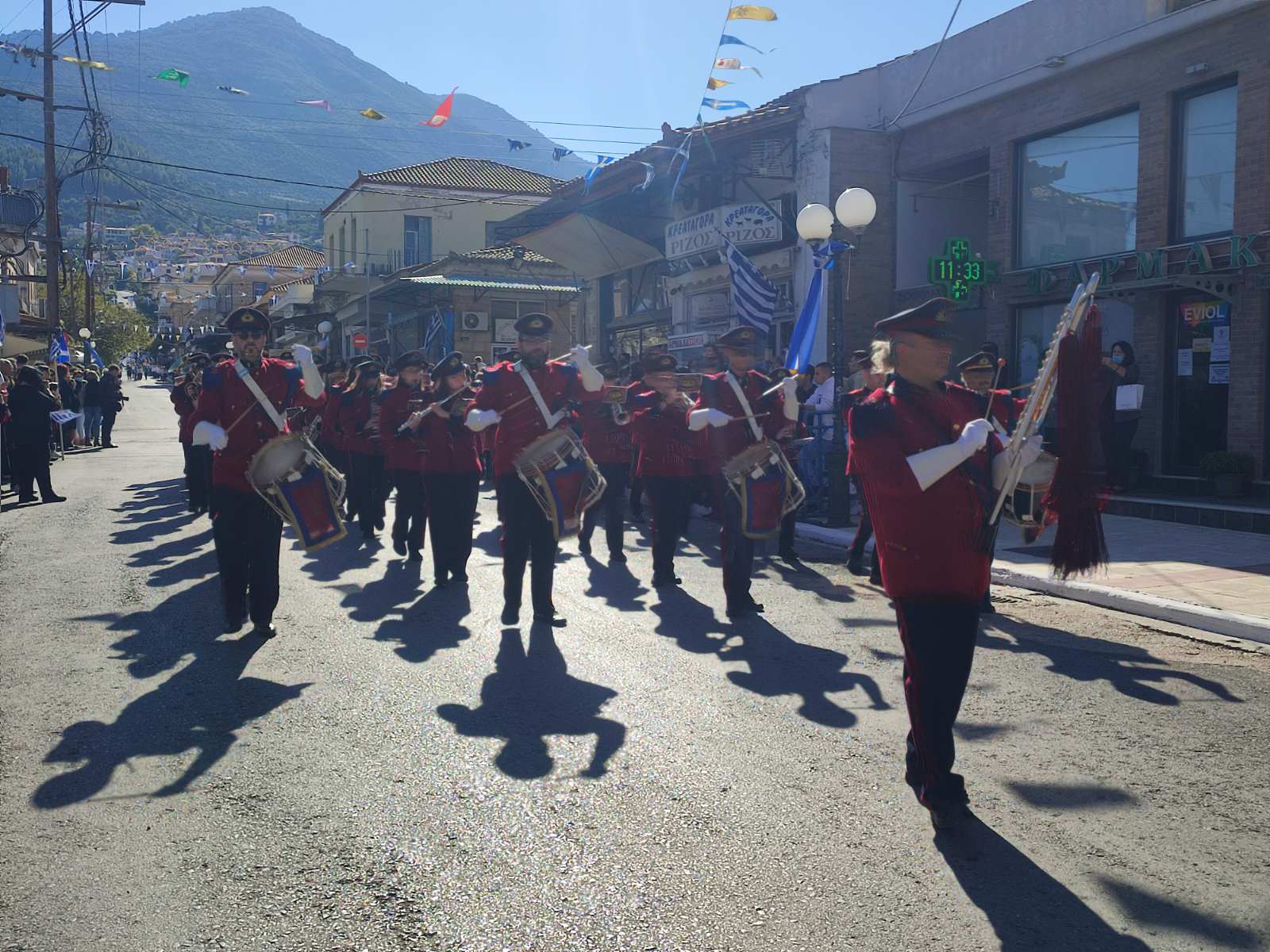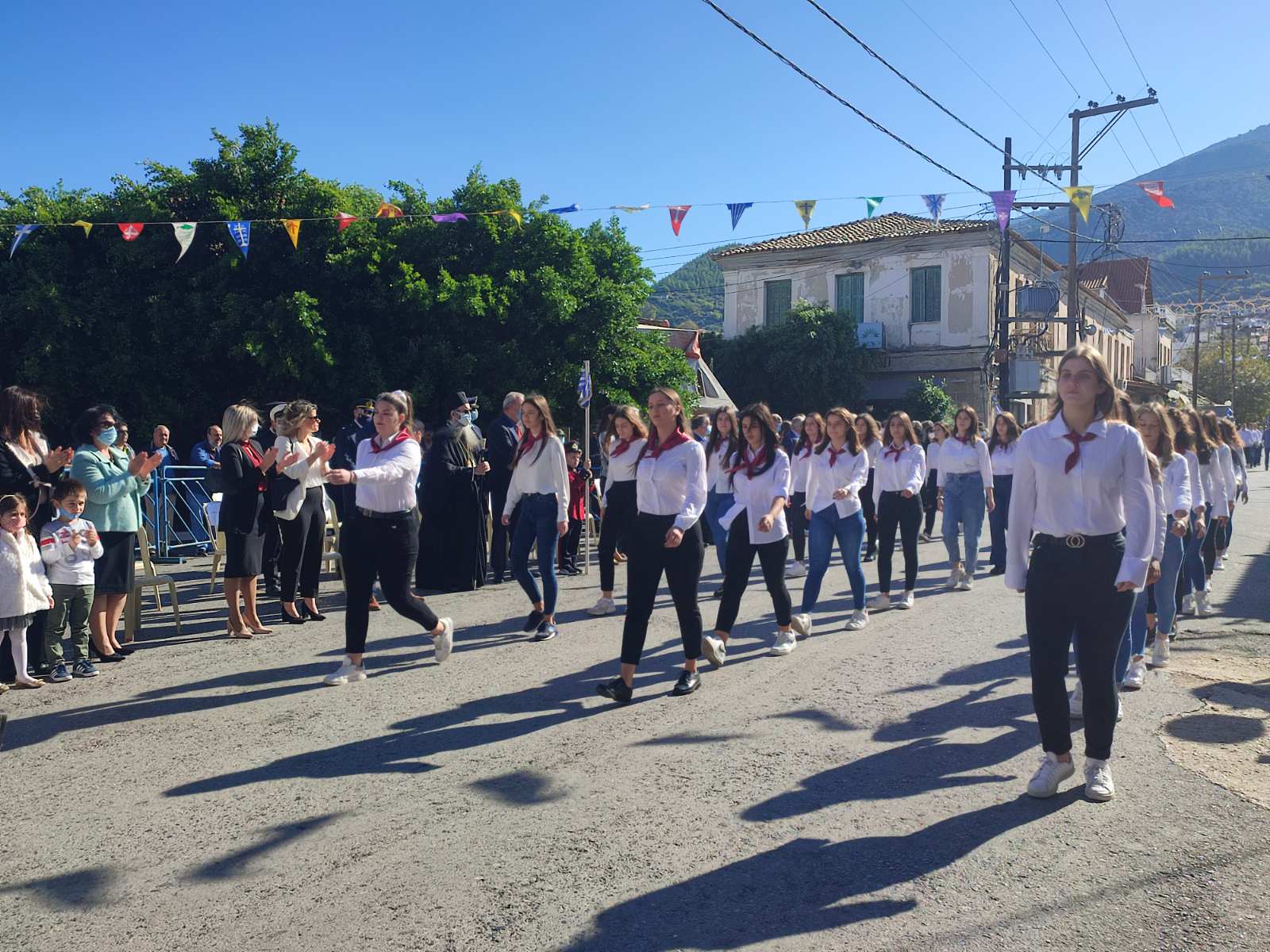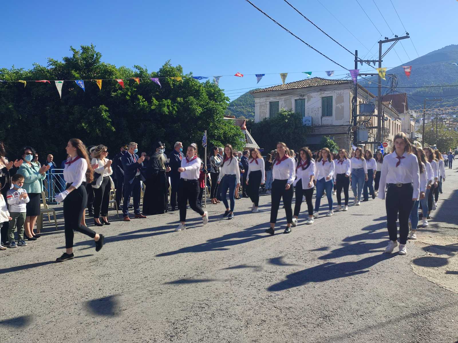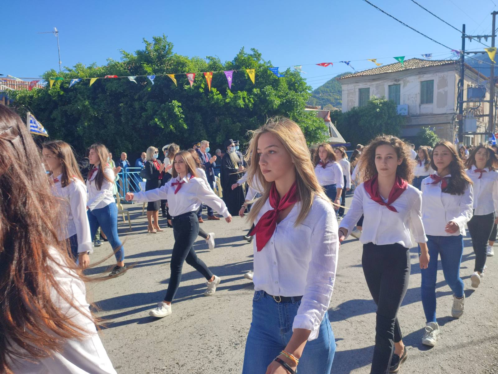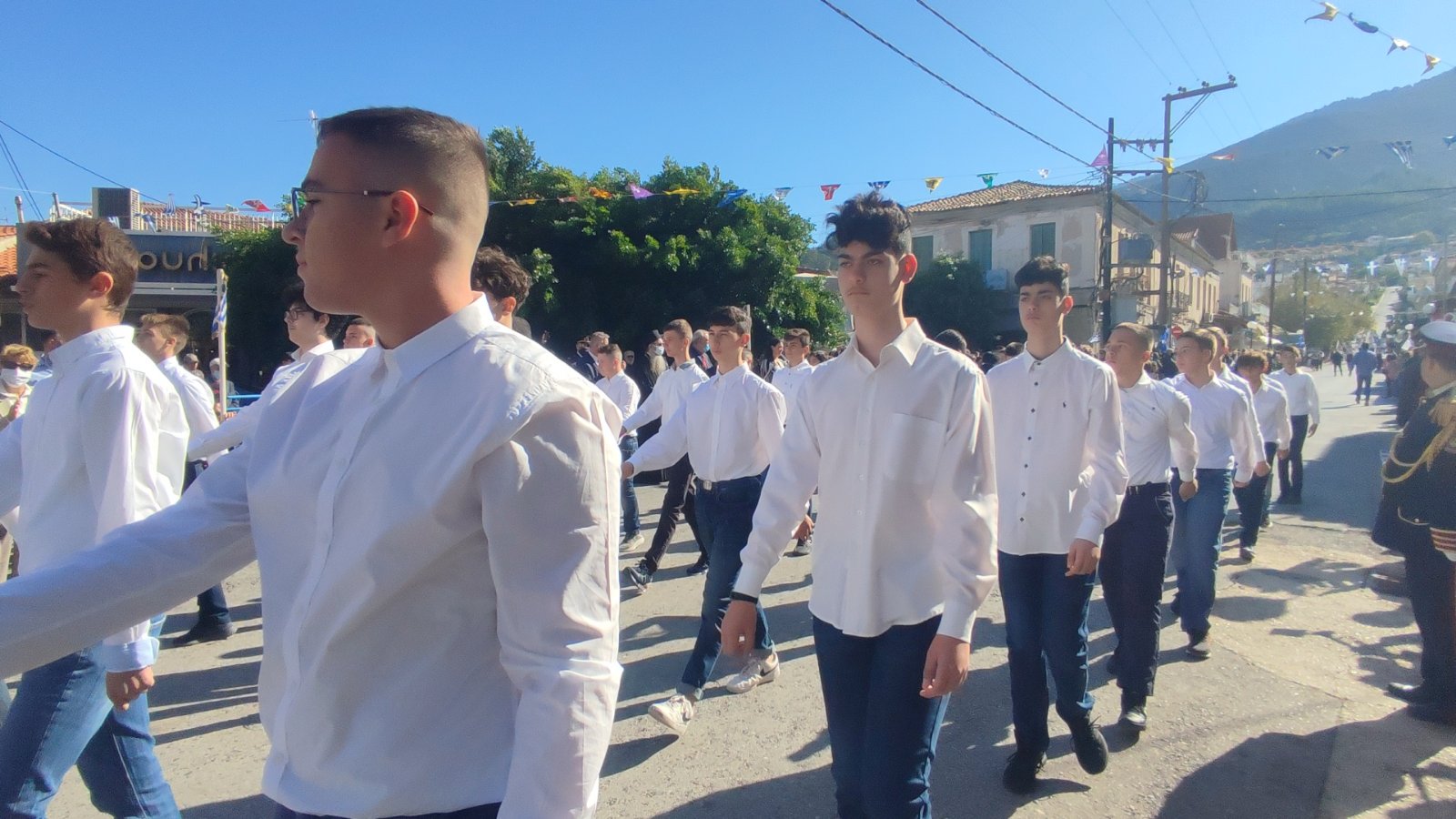 Ακολούθησε η μαθητική παρέλαση με προπομπό τη Δημοτική Φιλαρμονική Κυπαρισσίας και τμήματα από όλα τα σχολεία της πόλης, ενώ έκλεισε με τμήματα από τους Αθλητικούς Συλλόγους ΝΟΚΥ, ΔΙΩΝ και ΑΣΤ.