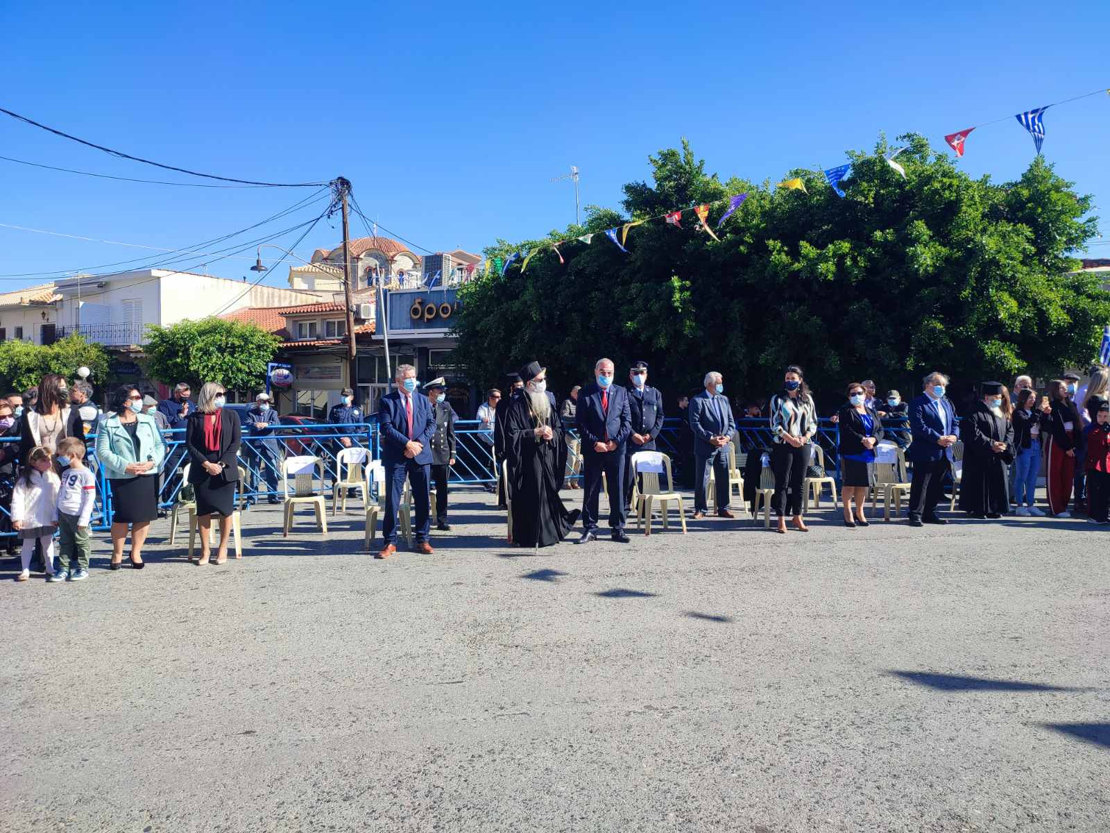 Στεφάνια κατέθεσαν ο δήμαρχος Τριφυλίας Γιώργος Λεβεντάκης, η αντιπεριφερειάρχης Άννα Καλογεροπούλου, ο υποδιοικητής του ΑΤ Τριφυλίας αστυνόμος Β' Βασίλης Παρασκευόπουλος, ο ανθυπασπιστής Γεώργιος Πετρόπουλος του 1ου Λιμενικού Τμήματος Κυπαρισσίας, ο ανθυποπυραγός Ιωάννης Διασάκος από το Πυροσβεστικό Κλιμάκιο Κυπαρισσίας, ο αντιδήμαρχος Αντώνης Βλάχος για το Σύλλογο Αναπήρων και Θυμάτων Πολέμου, ο αντιδήμαρχος Σωτήρης Μπακούρος για το τοπικό τμήμα Πολεμιστών Εθνικής Αντίστασης.