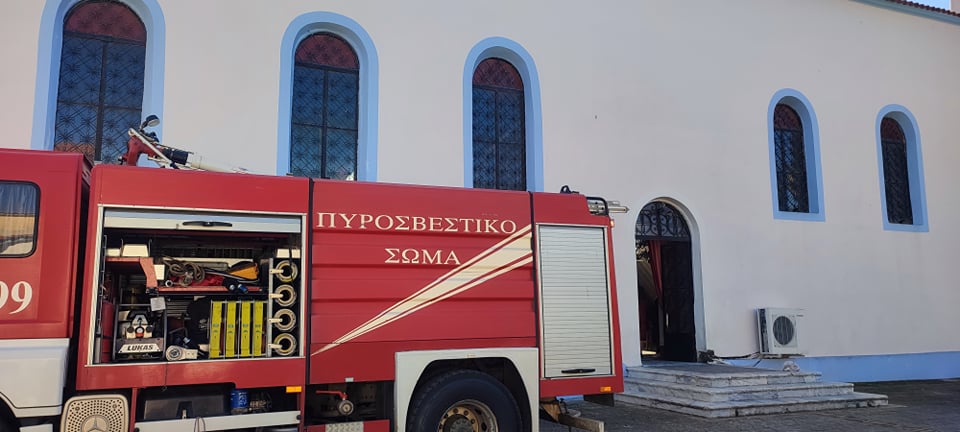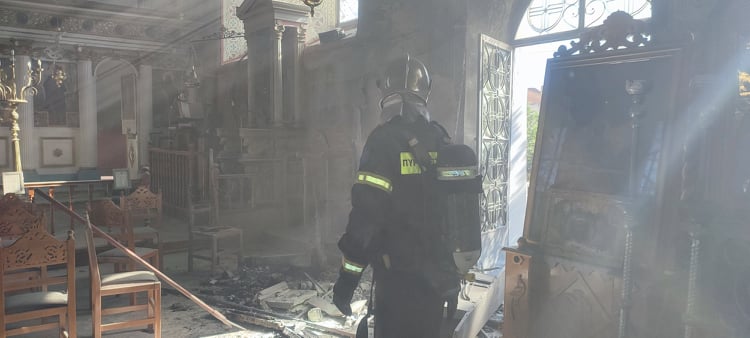 Η φωτιά εκδηλώθηκε στον εσωτερικό χώρο στη δεξιά πλευρά της εκκλησίας που βρίσκεται μια κλιματιστική μονάδα, έτσι εικάζεται ότι πιθανό βραχυκύκλωμα την προκάλεσε.