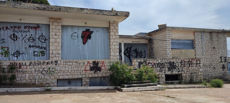 Κτήρια χτισμένα στο μπαλκόνι της πόλης στην περιοχή του Προφήτη Ηλία με θέα το Ιόνιο πέλαγος, τη νήσο Πρώτη και τον κάμπο από τις ελιές, έχουν αφεθεί στη μοίρα τους. Στον τουριστικό ξενώνα, με σιδερένιες λαμαρίνες έχει γίνει προσπάθεια να καλυφθεί η γύμνια και η φθορά του (αν και αυτές έχουν φθαρεί) ενώ στο γηροκομείο ένα συρματένιο πλέγμα φράζει την είσοδό του, και κατά την παρουσία μας εκεί διαπιστώσαμε πως κάποιες ψυχές έχουν βρει καταφύγιο προσωρινής διαμονής μέσα στα χαλάσματά του.