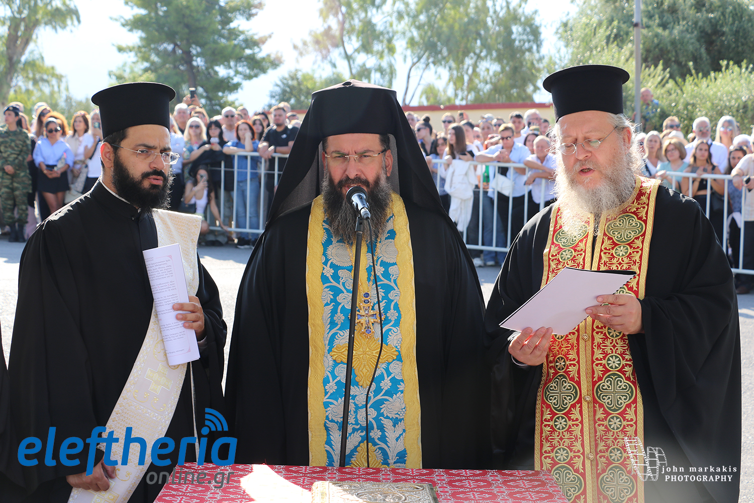 Στο θρησκευτικό μέρος της εκδήλωσης χοροστάτησε ο πρωτοσύγκελλος της Μητρόπολης Μεσσηνίας αρχιμανδρίτης Φίλιππος Χαμαργιάς, ο οποίος όρκισε τους 726 νεοσύλλεκτους, πλαισιωμένος από τον πρωτοπρεσβύτερο Θεμιστοκλή Χριστοδούλου, ο οποίος με συγκίνηση υμμετείχε στην ορκωμοσία του γιου του και τον διάκονο Θεόφιλο Κυριάκο.