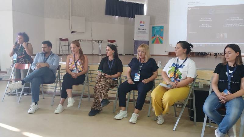 Η ανταλλαγή απόψεων και οι συναρπαστικές συζητήσεις συνεχίστηκαν στον εξωτερικό χώρο του σχολείου, όπου προσφέρθηκαν αναμνηστικά δωράκια από την ΠΕΕΜΠΙΠ και τη Γενική Διεύθυνση Μετάφρασης της Ευρωπαϊκής Επιτροπής (Γραφείο Αθηνών). Το έντονο ενδιαφέρον του κοινού καθ’ όλη τη διάρκεια της ημερίδας υπήρξε για την ΠΕΕΜΠΙΠ το ισχυρότερο κίνητρο για την επανάληψη παρόμοιων δράσεων.