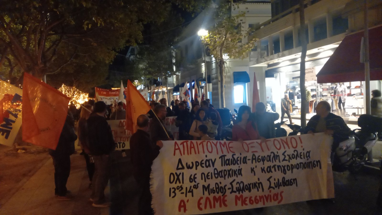 Η συγκέντρωση ξεκίνησε με απαγγελίες ποιημάτων και τραγουδιών, ενώ ακολούθησαν χαιρετισμοί από τον πρόεδρο του Συνδικάτου Οικοδόμων Μεσσηνίας Παναγιώτη Καράμπελα, από την εκπρόσωπο της Ενωσης Συλλόγων Γονέων Καλαμάτας Μαρία Φράγκου, ενώ την κεντρική ομιλία πραγματοποίησε η πρόεδρος του Συλλόγου Εκπαιδευτικών Πρωτοβάθμιας Εκπαίδευσης Μεσσηνίας Χριστίνα Λαδά.