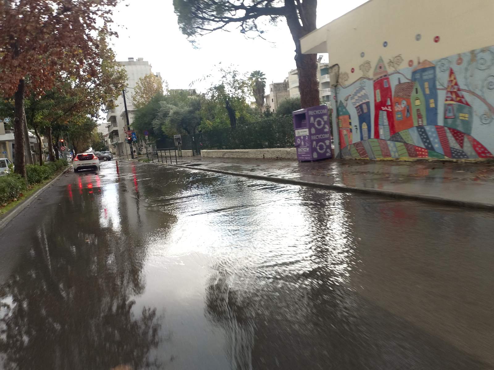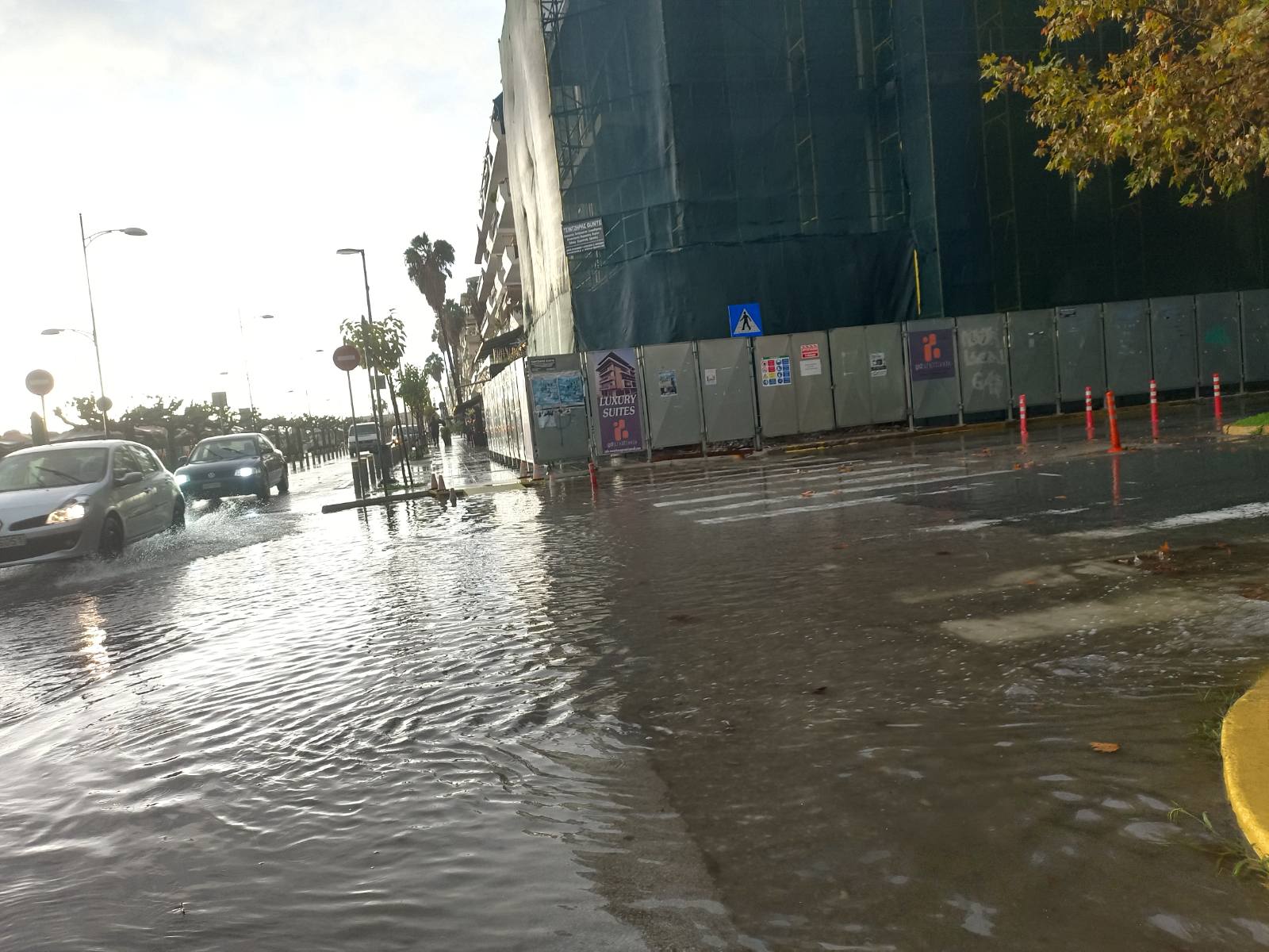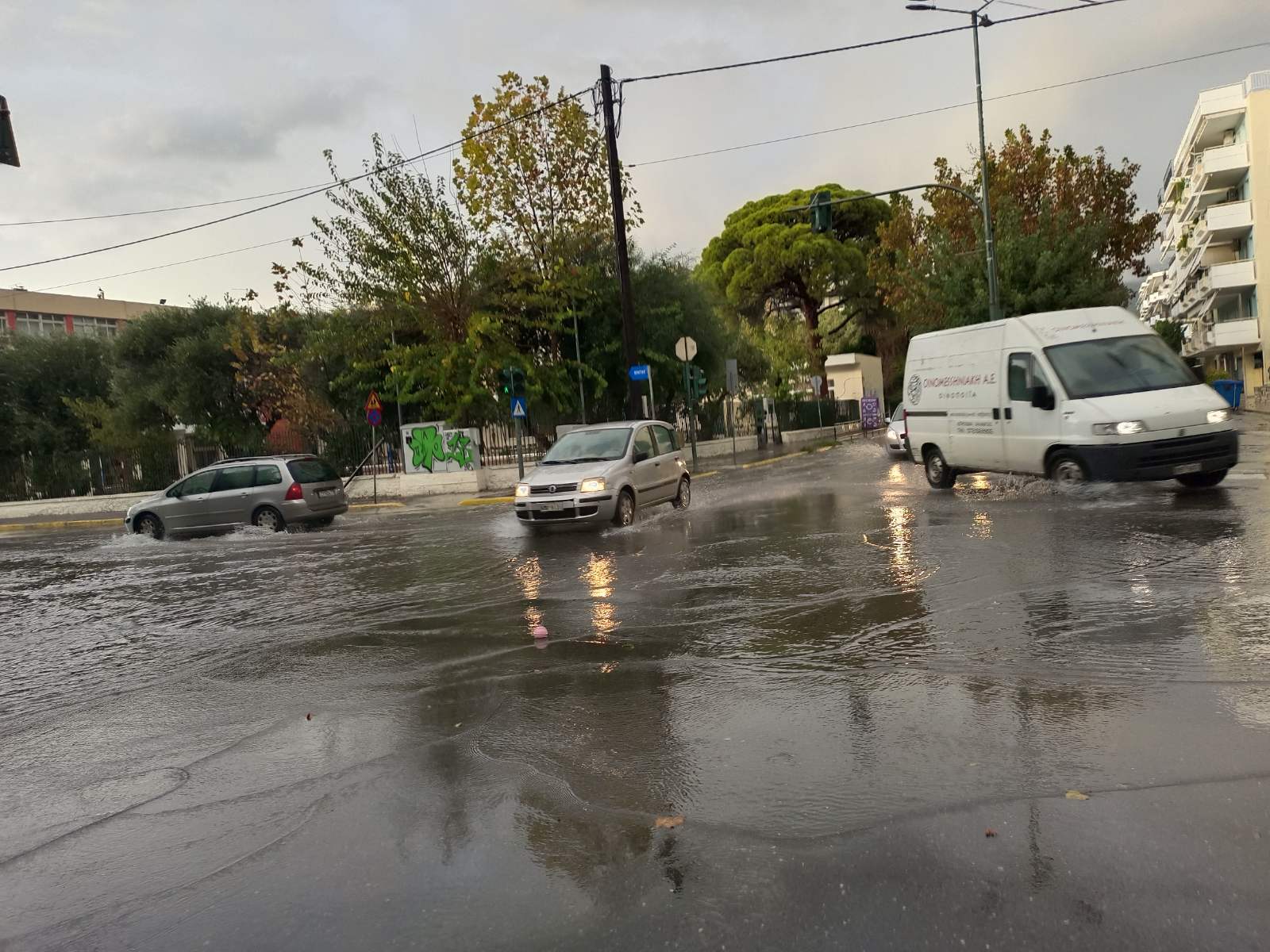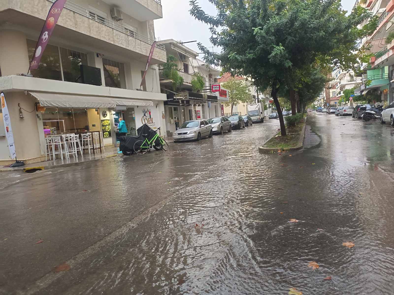 Το μεσημέρι, η Ακρίτα, ένας από τους πιο προβληματικούς δρόμους της πόλης από πλευράς απορροής ομβρίων, μετατράπηκε σε ρέμα, ενώ υπήρξαν αναφορές και για άλλα σημεία όπου η συγκέντρωση νερού δημιούργησε προβλήματα στην κυκλοφορία.