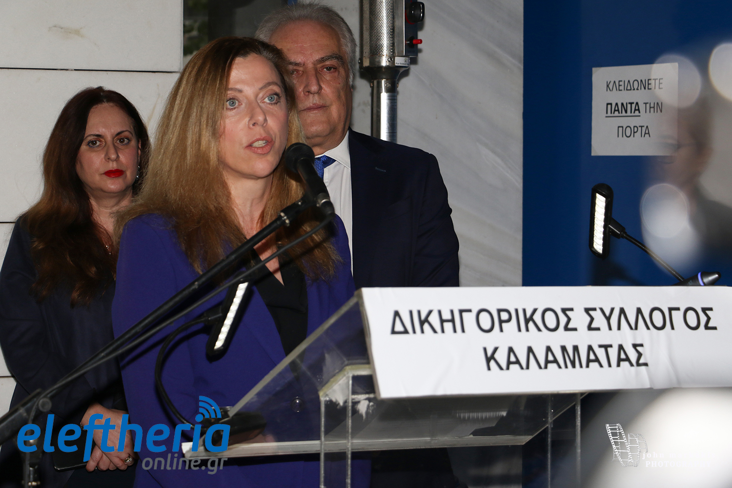 Χαιρετισμούς ακόμη απηύθυναν η Εισαγγελέας Εφετών Καλαμάτας Άννα Νικητοπούλου, η πρόεδρος Πρωτοδικών Μεσσηνίας Ευαγγελία Τσαπαλιάρη και ο αντιπεριφερειάρχης Μεσσηνίας Στάθης Αναστασόπουλος.